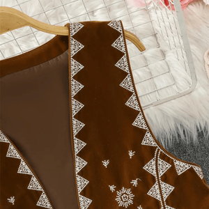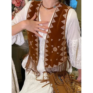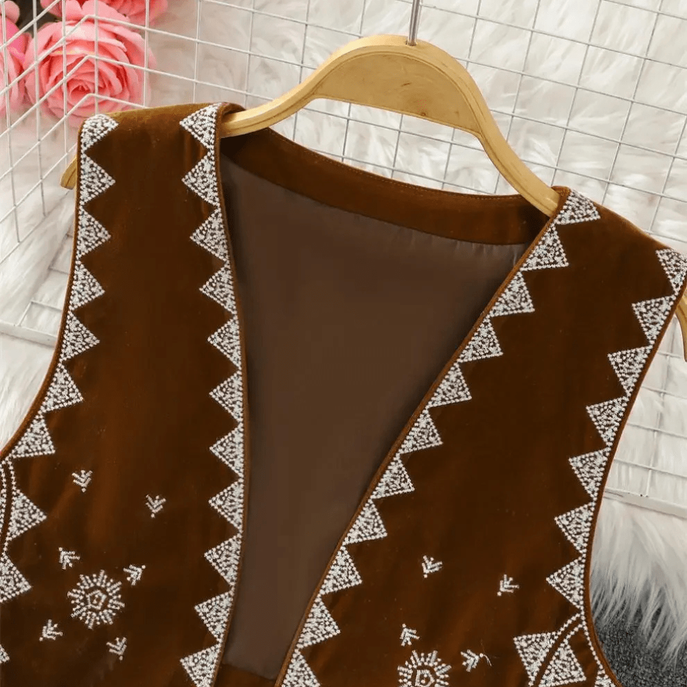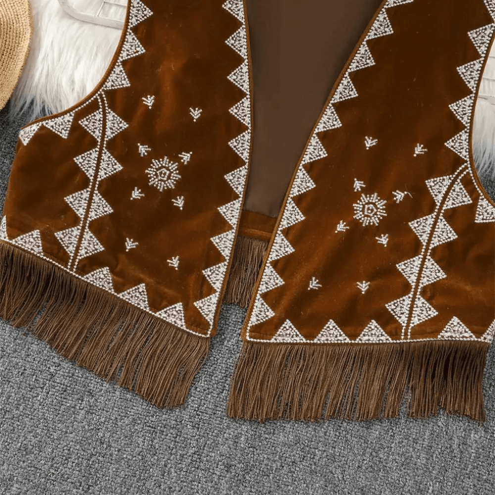 Brun väst med etniskt broderi och fransdetaljer: ge din look en bohemisk själ