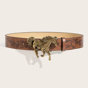Ett uttrycksfullt spänne i form av en springande häst skapar rörelse och dynamik i varje outfit. -