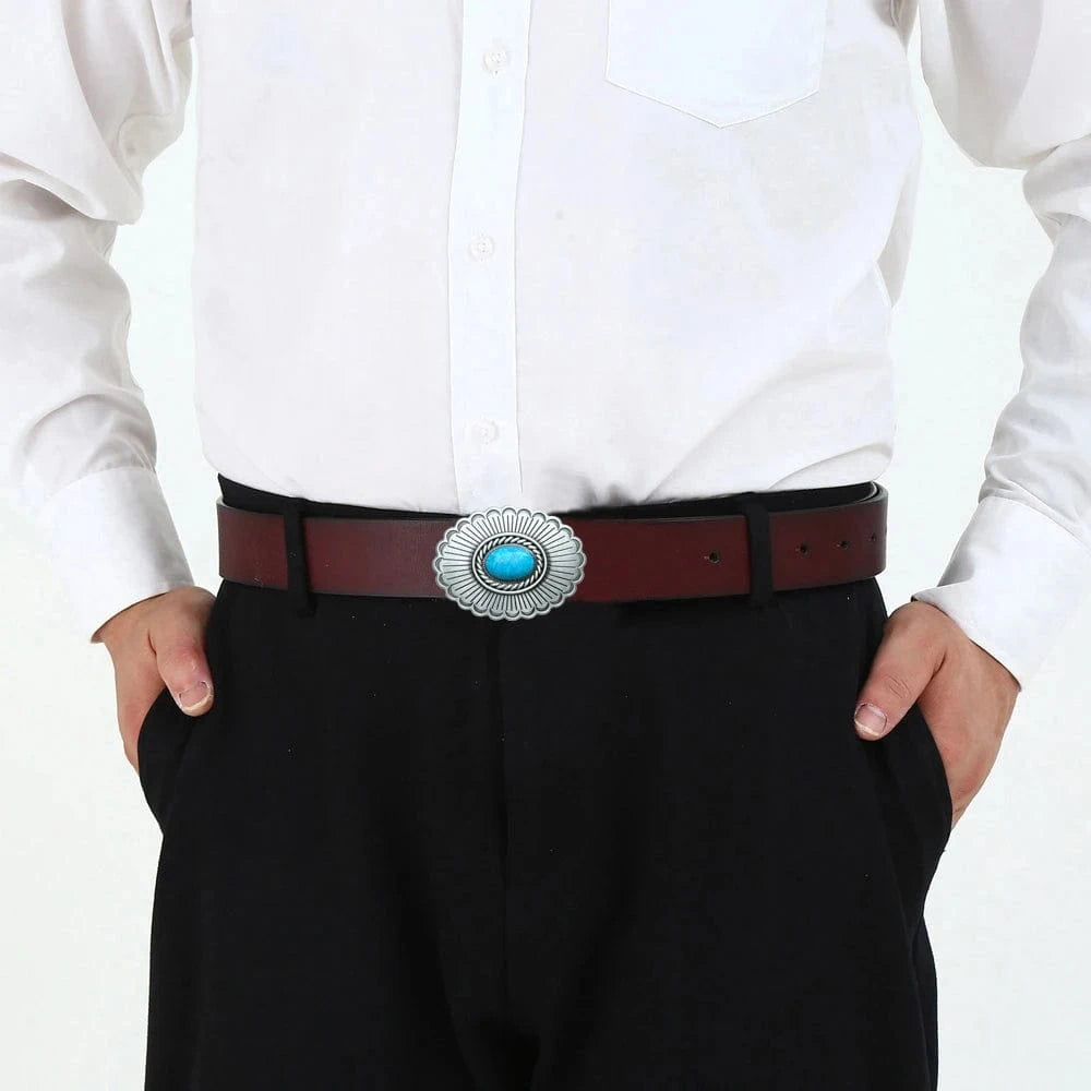 Ge din outfit en touch av western-elegans med vårt Concho Bältesspänne i silver och turkos. Låt din stil tala för sig själv med detta tidlösa bältesspänne. Den vackra turkosa stenen omgiven av silverfärgad detaljrikedom ger dig den perfekta balansen mellan robust cowboy-känsla och elegant sofistikering. Perfekt för dig som vill sticka ut – både till vardags och vid speciella tillfällen.