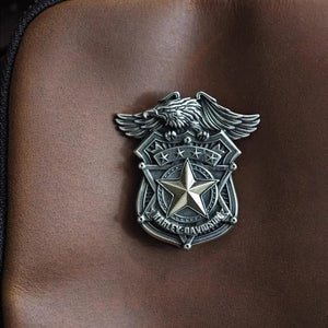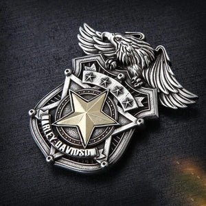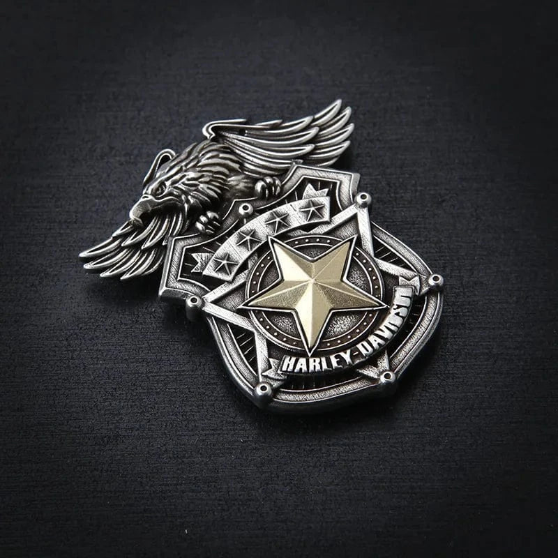 Lyft din bikerstil med vår 3D-concho med flygande örn och sköldmotiv