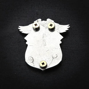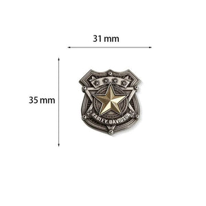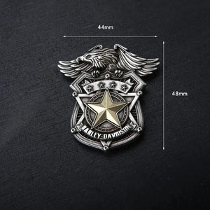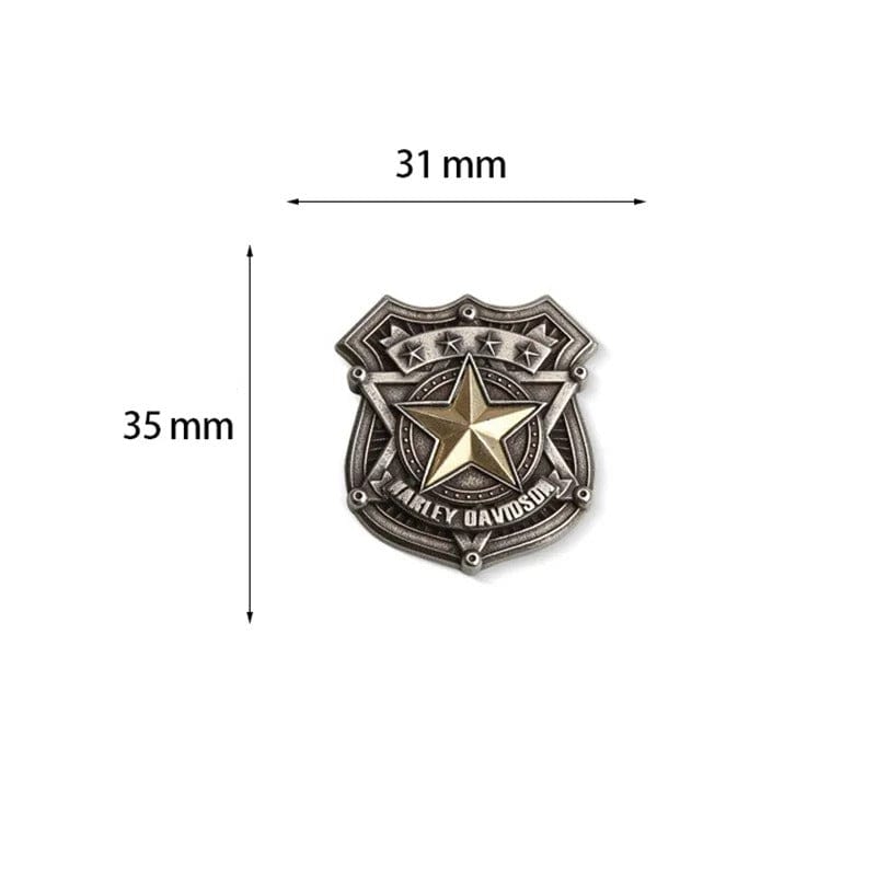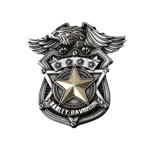 Kraftfull, ikonisk och full av attityd – den här metallconchon är en hyllning till frihetens symboler. Med en präglad örn med utslagna vingar och en stjärnprydd sköld utstrålar den både styrka och elegans. En perfekt detalj för dig som vill göra ett intryck, oavsett om det är på en jacka, väska eller motorcykelväst.
