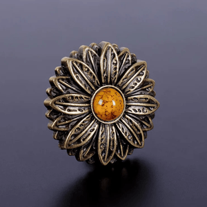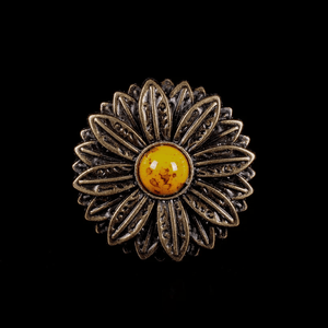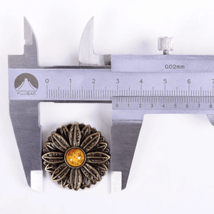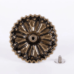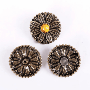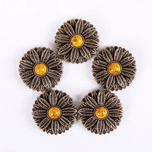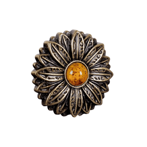 Upptäck en tidlös accessoar för dina kreativa projekt. Denna Concho i antikkoppar med färgad sten är formad som en blomma och tillför en subtil westernkänsla till allt från läderväskor till jackor och bälten.