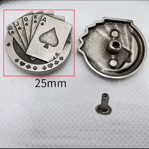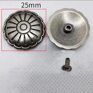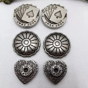 Lyft dina DIY-projekt med en concho i robust zinklegering, skapad för att ge läderarbeten en distinkt och sofistikerad karaktär. Finns i flera ikoniska former som blommig, hjärta och spelkort – redo att uttrycka din stil.