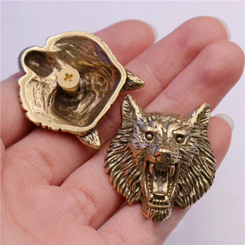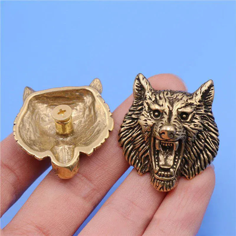 Concho i mässing med 3D-varghuvud som ger din utrustning rå westernattityd