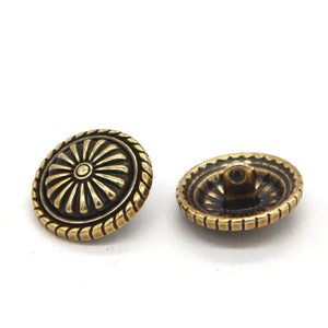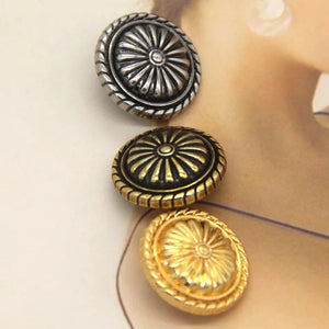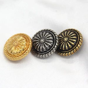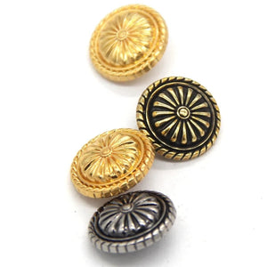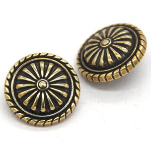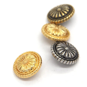 Letar du efter det där lilla extra till din kavaj, rock eller kofta? Våra runda concho-knappar i metall ger varje plagg ett sofistikerat, handgjort uttryck – tillgängliga i tre utsökta färger.