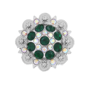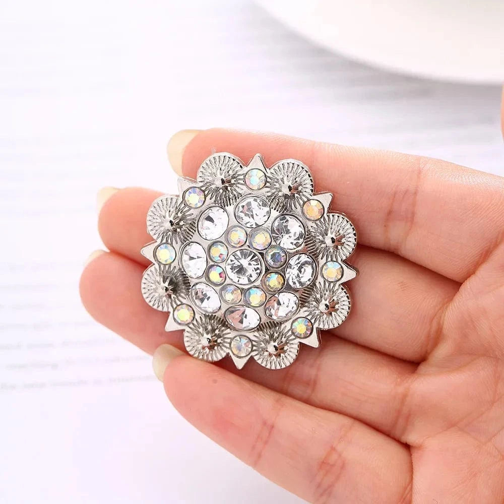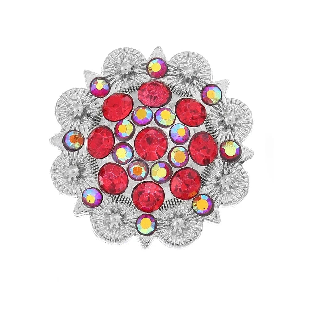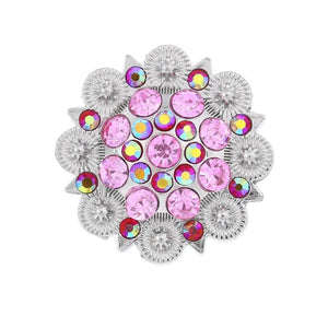 Lyft din väska, ditt bälte eller armband med en touch av färg och elegans. Den här strålande conchon med kristallstenar i blomform är skapad för att ge liv åt dina accessoarer – oavsett om du föredrar ljust, dramatiskt eller färgglatt.