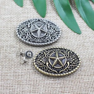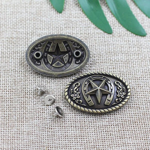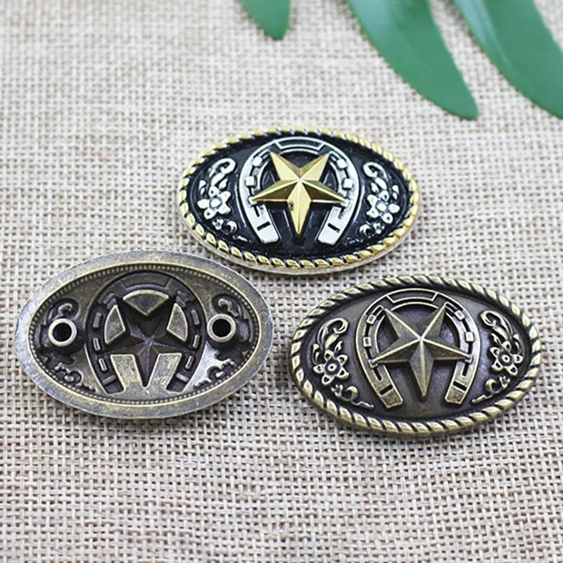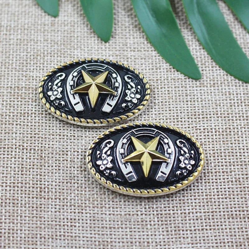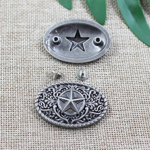 Upptäck den perfekta detaljen för att förhöja din handgjorda läderaccessoar – en robust, elegant och karaktärsfull concho i metall med ikoniskt stjärnmotiv.