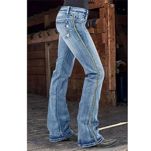 Ge din look en självsäker attityd med våra Country Western Jeans – en hyllning till klassisk cowgirl-stil med en modern twist. Perfekta att styla med boots, skjorta eller en kort topp för den där naturliga, avslappnade känslan.
