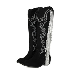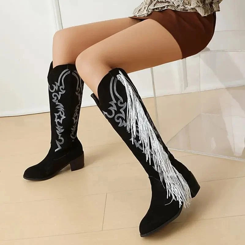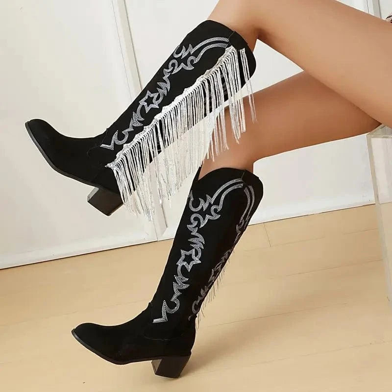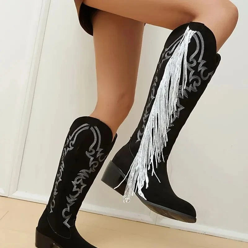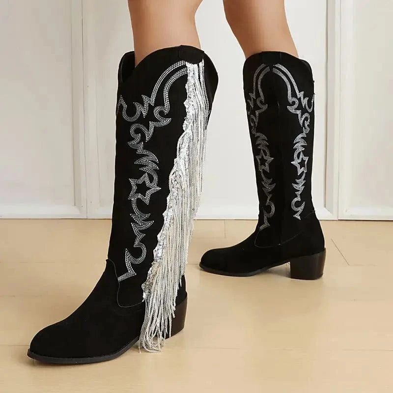 Svarta cowboystövlar med fransar : där vilda västern möter modern elegans