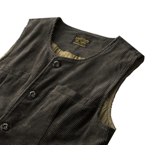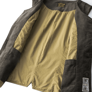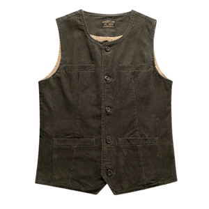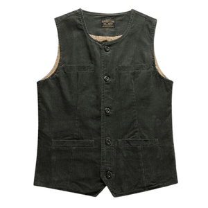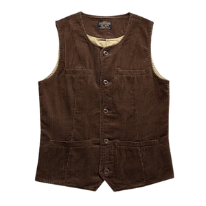 Ge din garderob en touch av tidlös robusthet med denna manchesterväst i vintagestil – perfekt för dig som vill bygga en autentisk Classic Americana-look. Med sitt slitstarka manchestertyg och rena, kraglösa design är den lika självklar på prärien som i stadens gator.