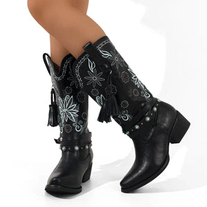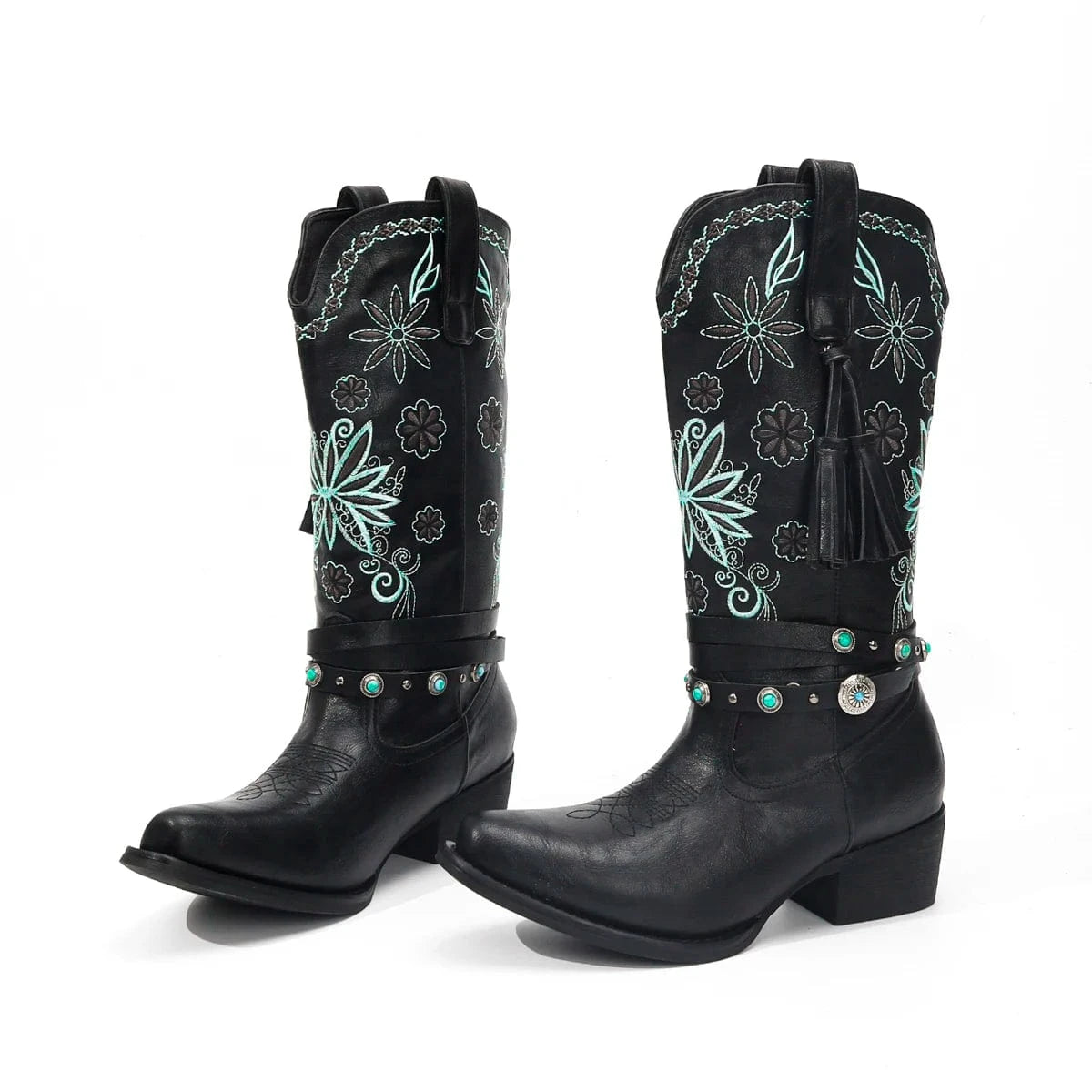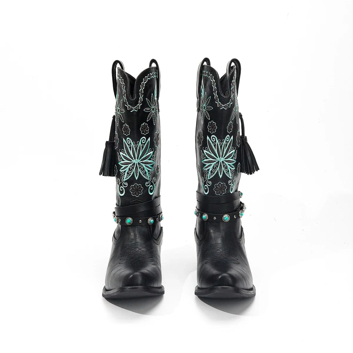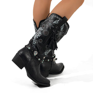 Upptäck dina nya favoritboots – ett par svarta cowboy skor med broderade detaljer och självsäker attityd. Perfekta för dig som vill kombinera stil, komfort och en touch av vilda västern i vardagen. Oavsett om du bär dem till jeans, klänning eller kjol, kommer de garanterat att dra blickarna till sig.