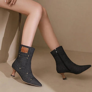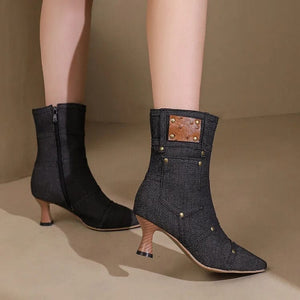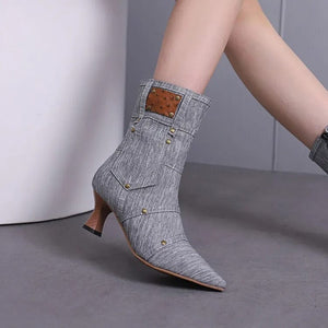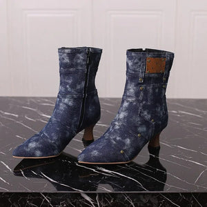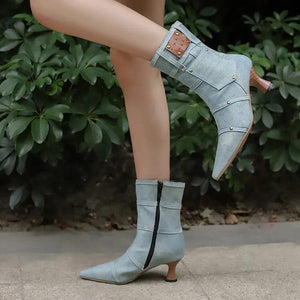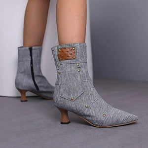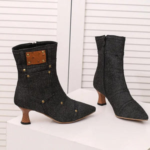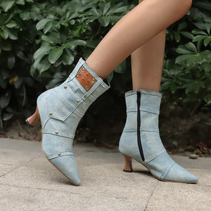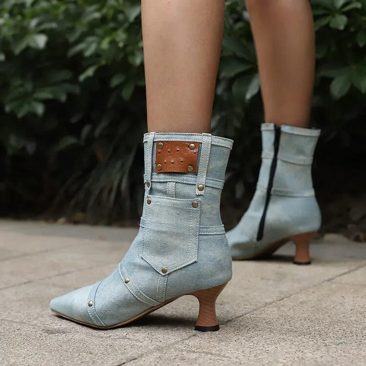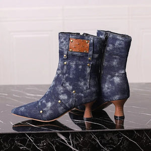 Cowboy stövletter i denim med ficka och nitar: statement-boots för din vilda sida