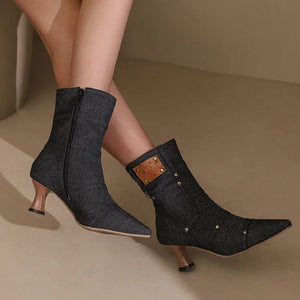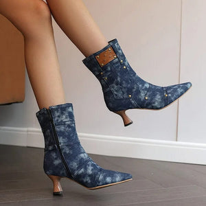 Gör entré med boots som väcker uppmärksamhet. Våra cowboy stövletter i denim kombinerar klassisk westernstil med en modern twist – med dekorativa nitar, en praktisk ficka och en bekväm klack på 6 cm. Perfekta för dig som älskar unika detaljer och att stå stadigt med stil.