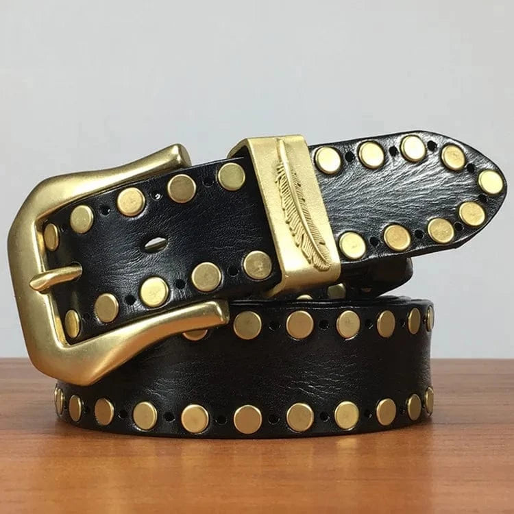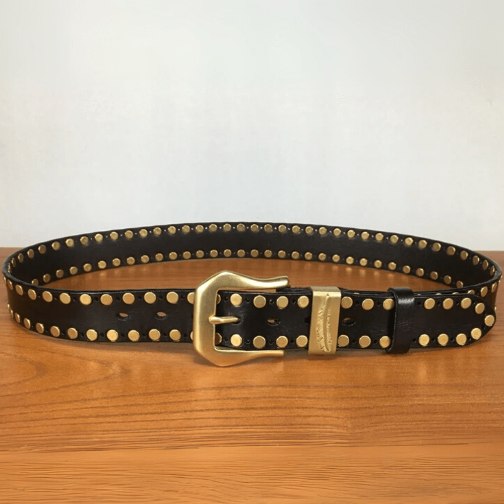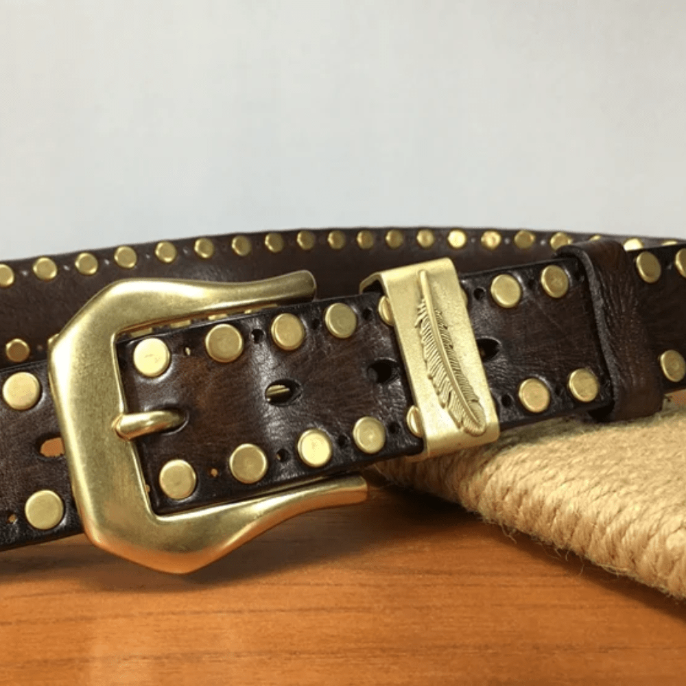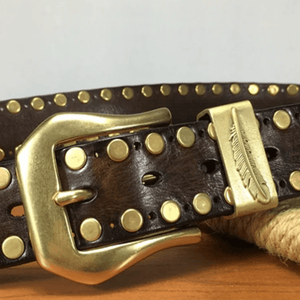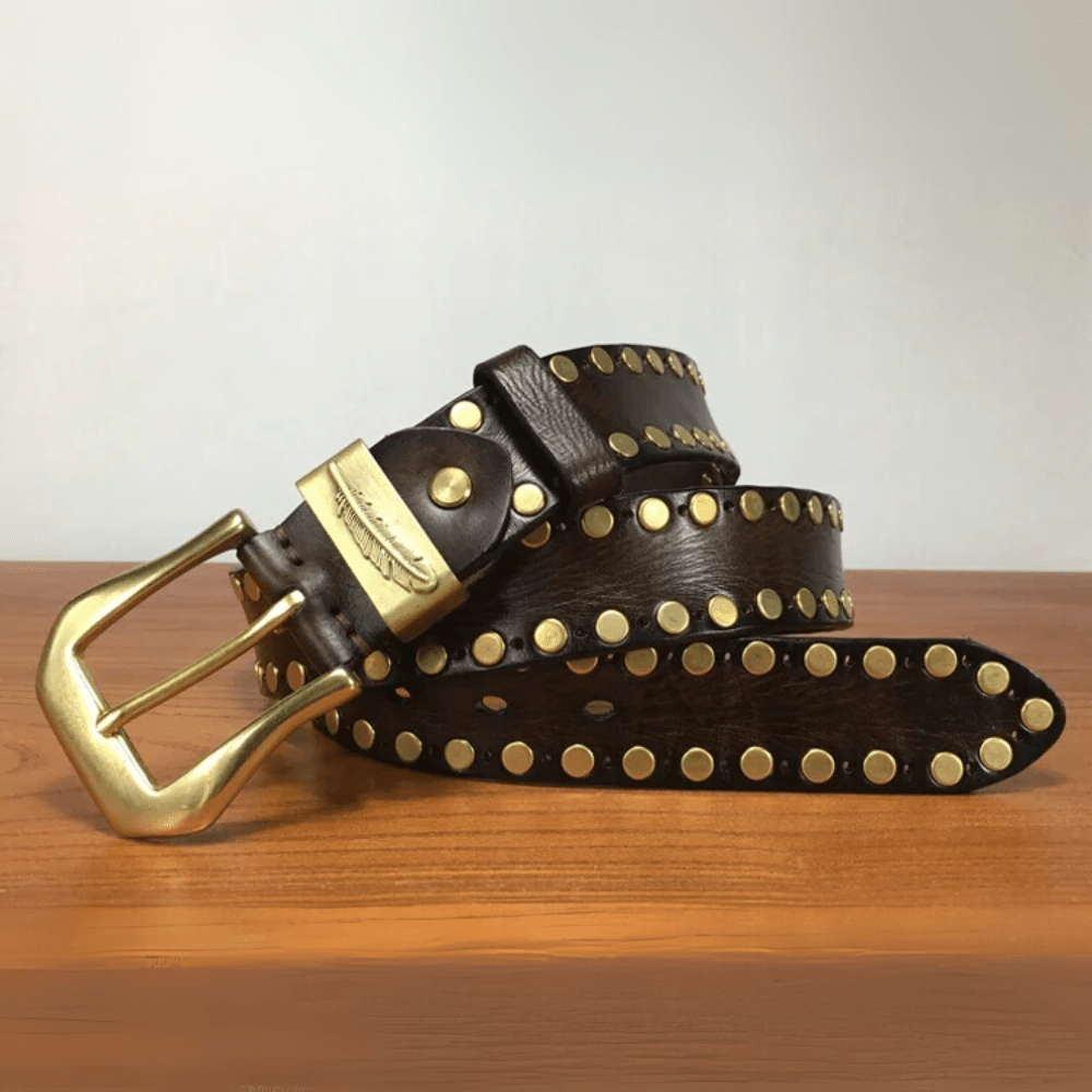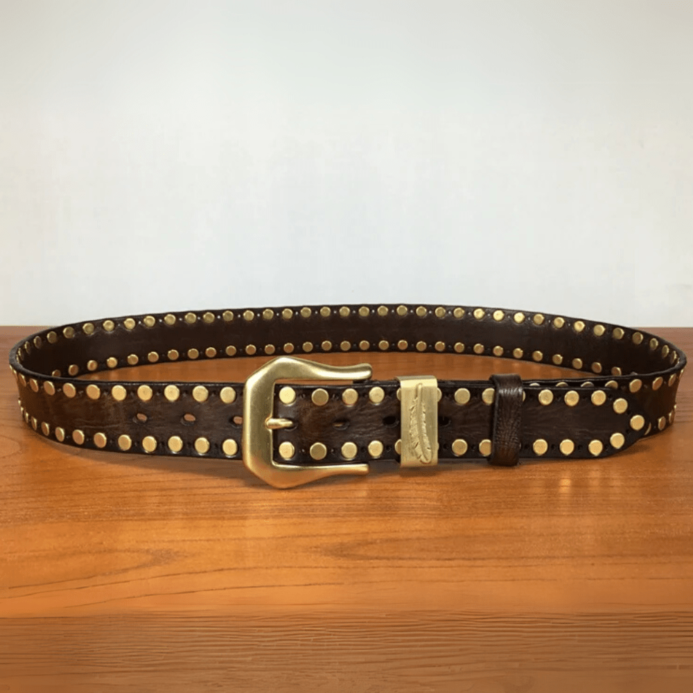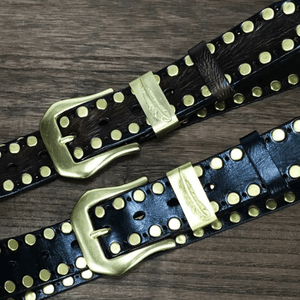 Cowboybälte i äkta läder med nitar och slitstarkt spänne