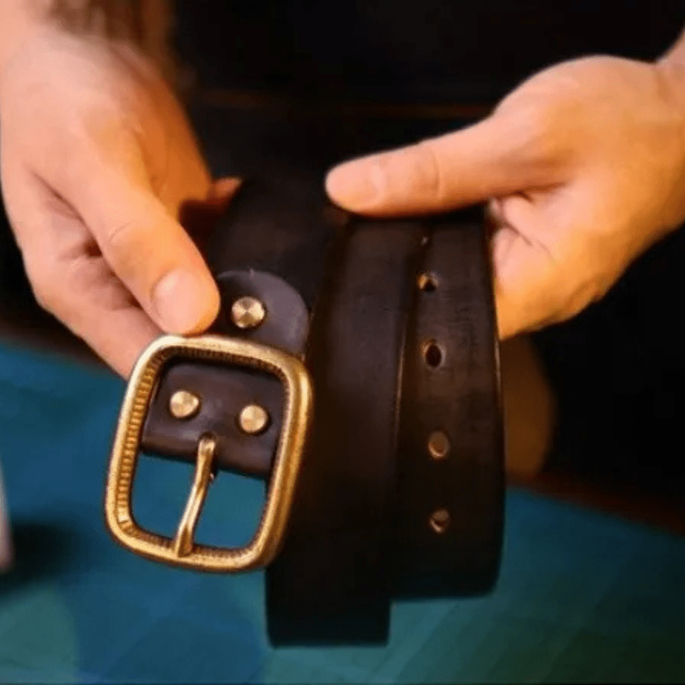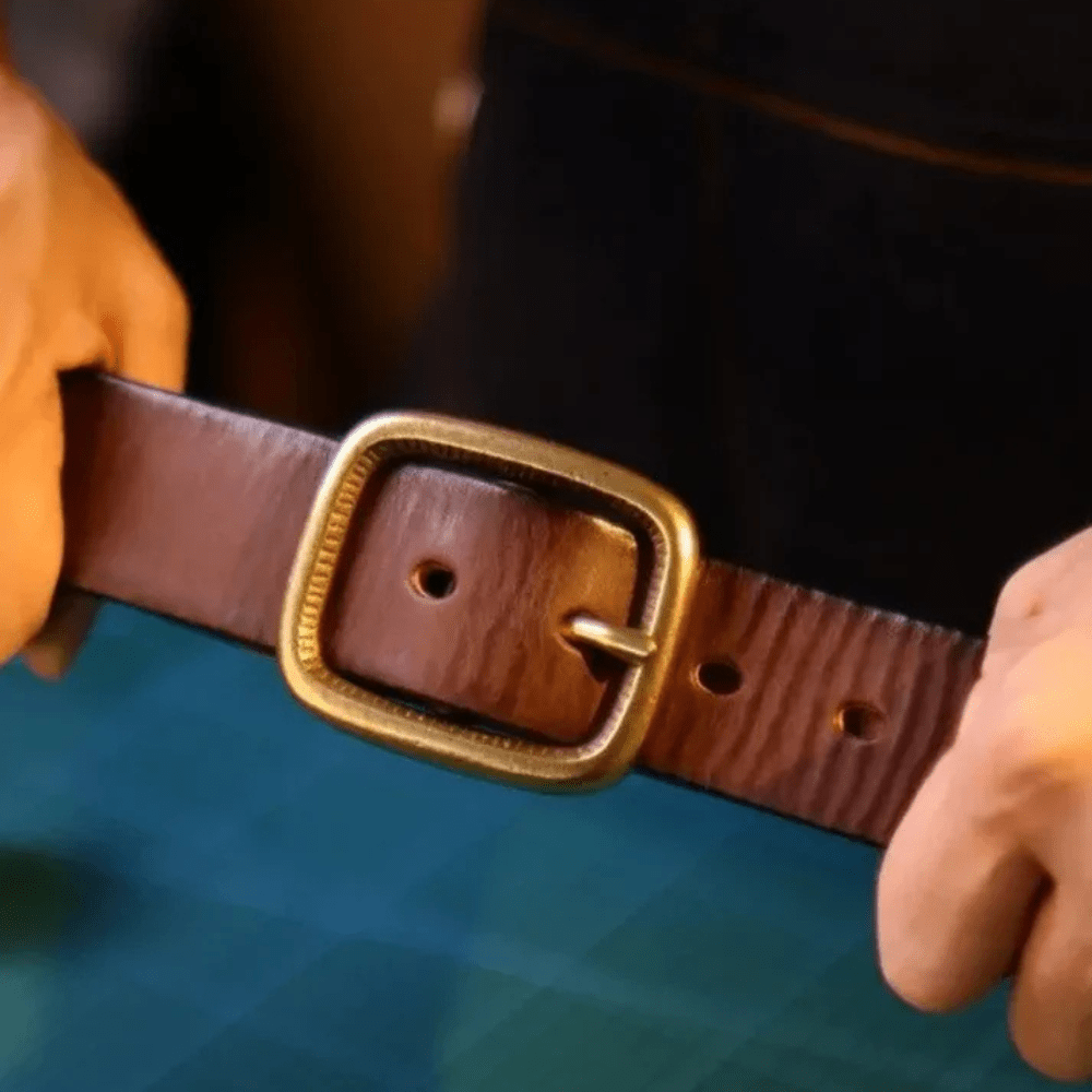 Cowboybälte i Äkta Läder med Vintage Mässingsspänne