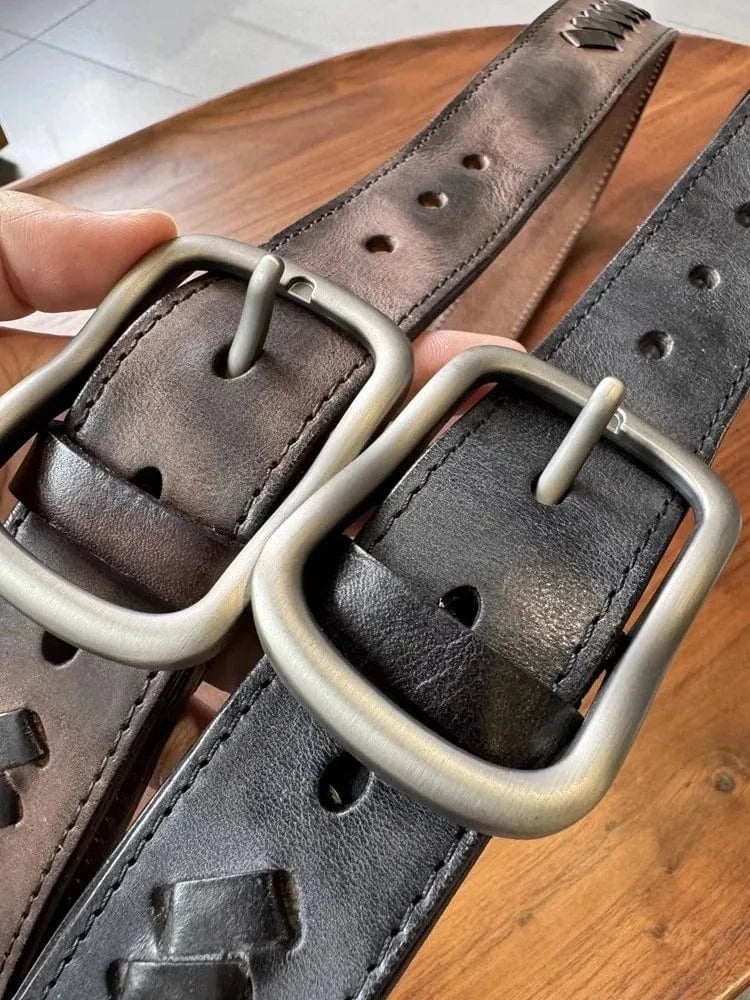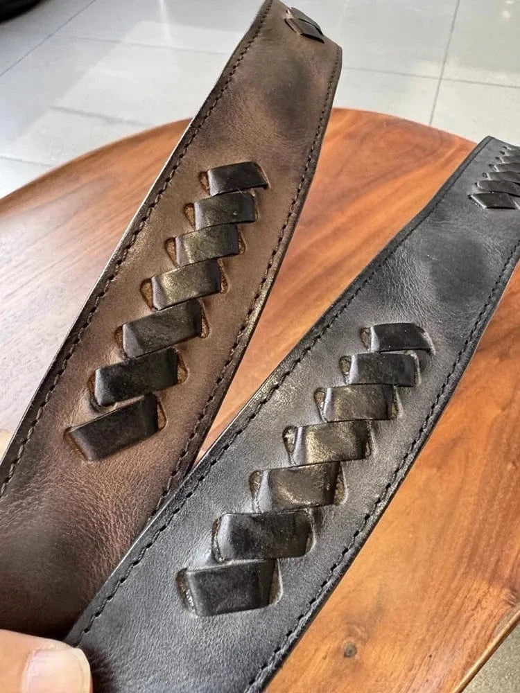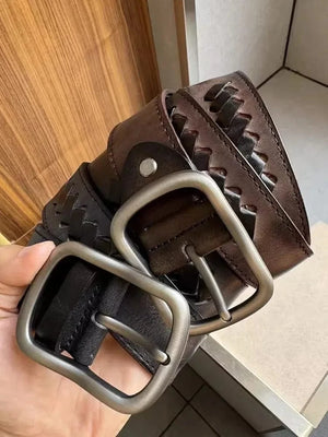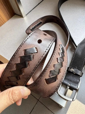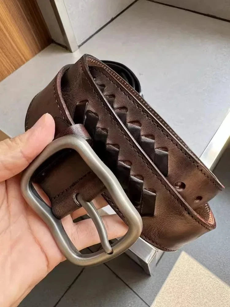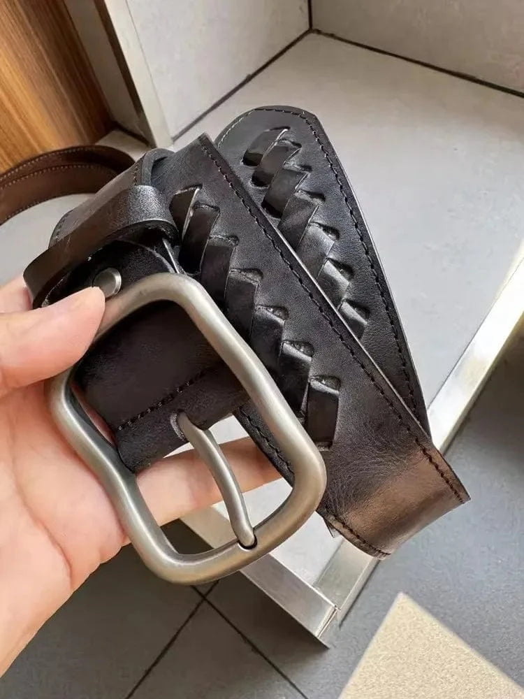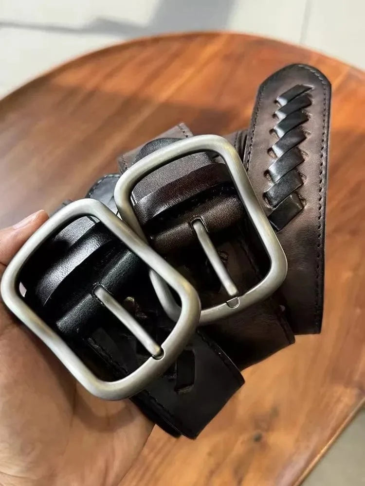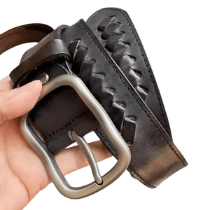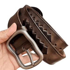 Cowboybälte i Handgjort Flätat Läder med Klassisk Spänne
