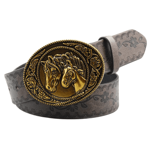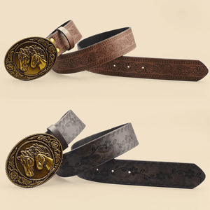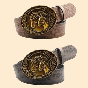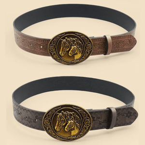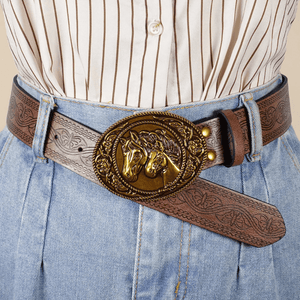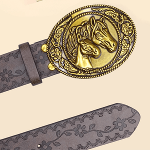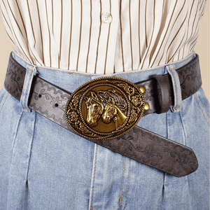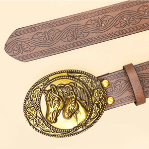 Föreställ dig ett bälte som kombinerar nostalgisk westernstil med feminin elegans – detta är precis vad vårt cowboybälte med hästmotiv erbjuder. Det är en perfekt accessoar för dig som vill sticka ut på jobbet, under en fika i stan eller till ett par slitna jeans på ridturen.