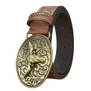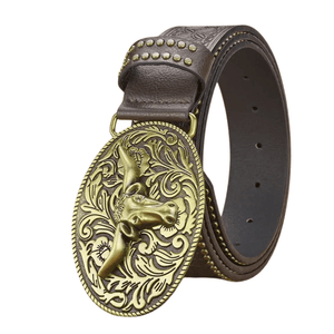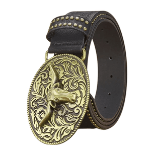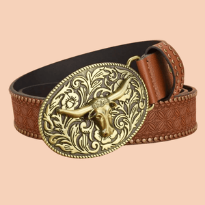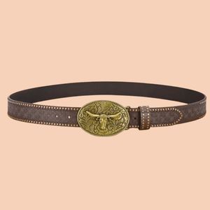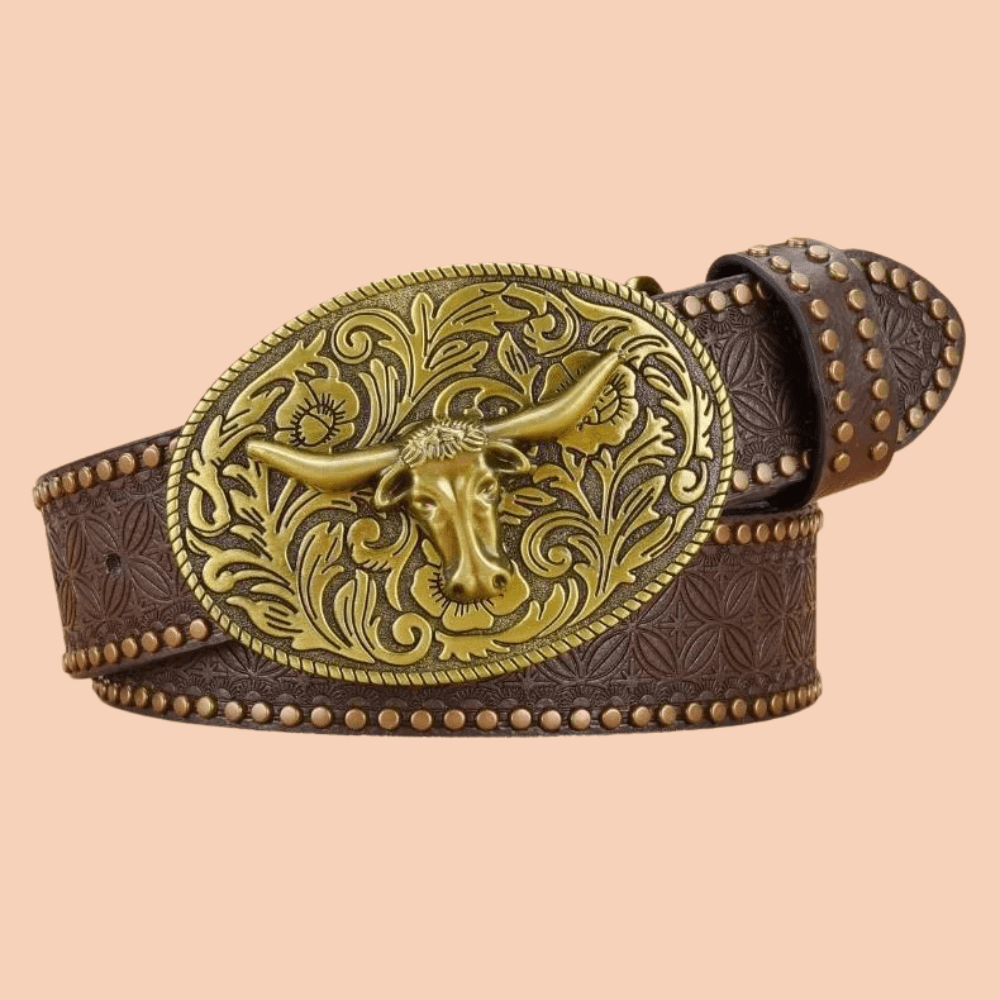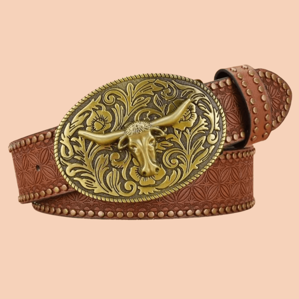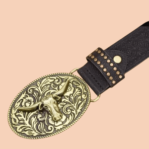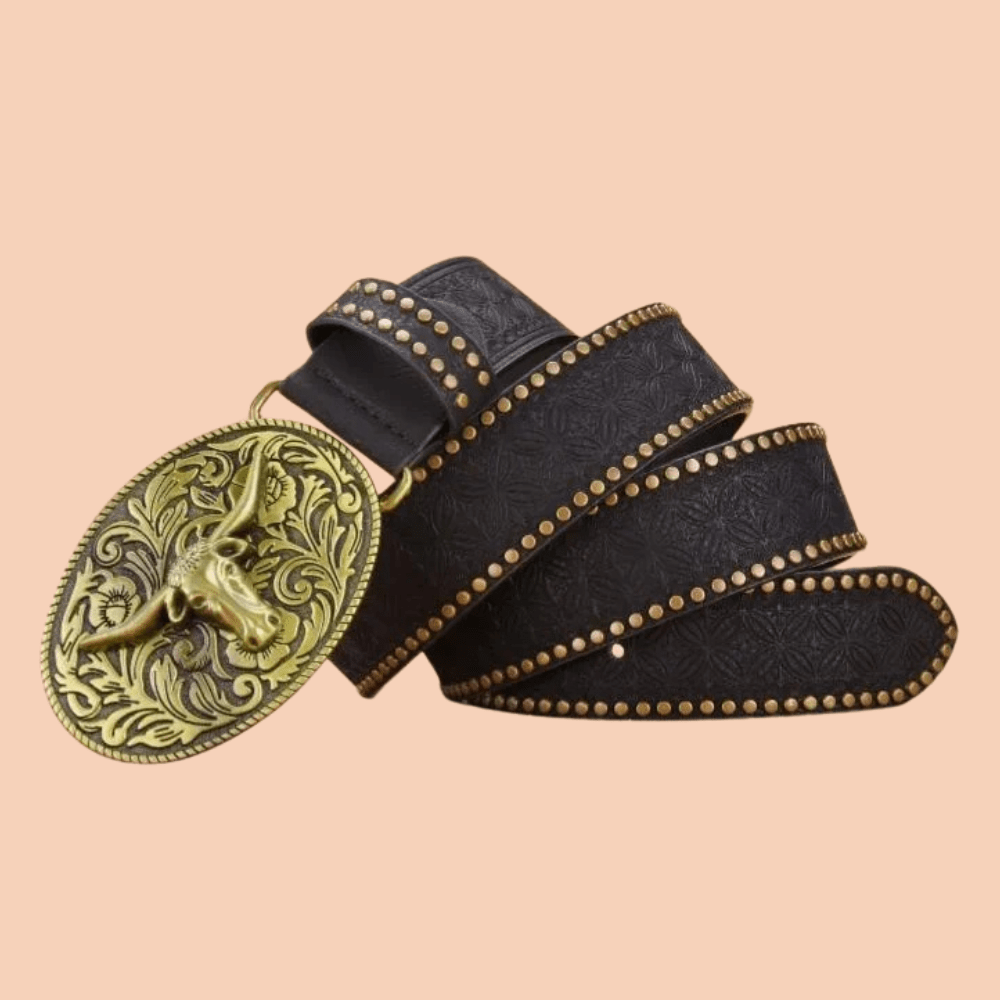 Cowboybälte med Präglad Nöthuvud-Spänne och Nitar