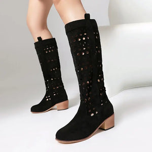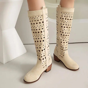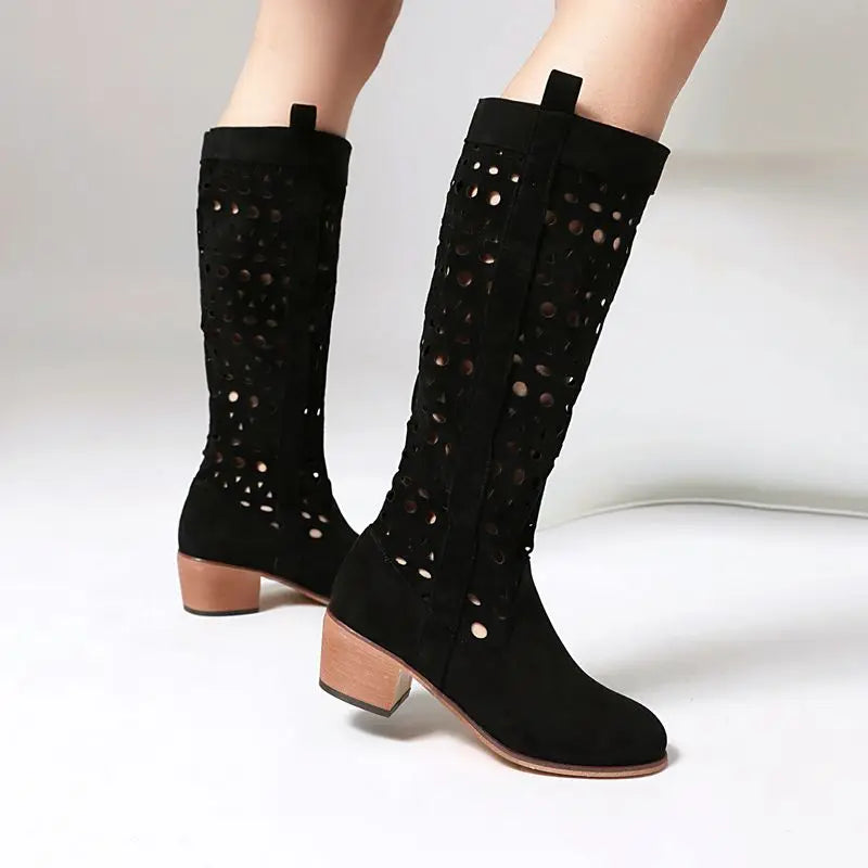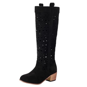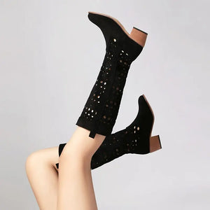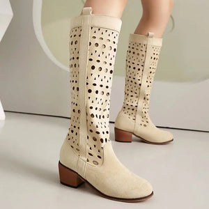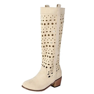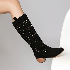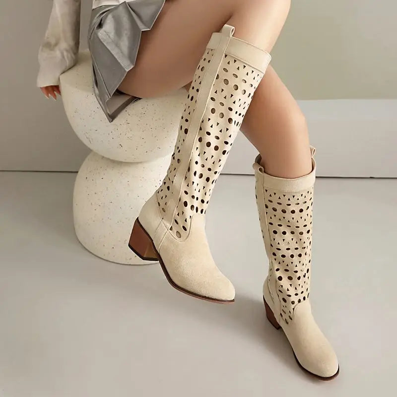 Cowboyboots i mocka med utskuret mönster och rund tå