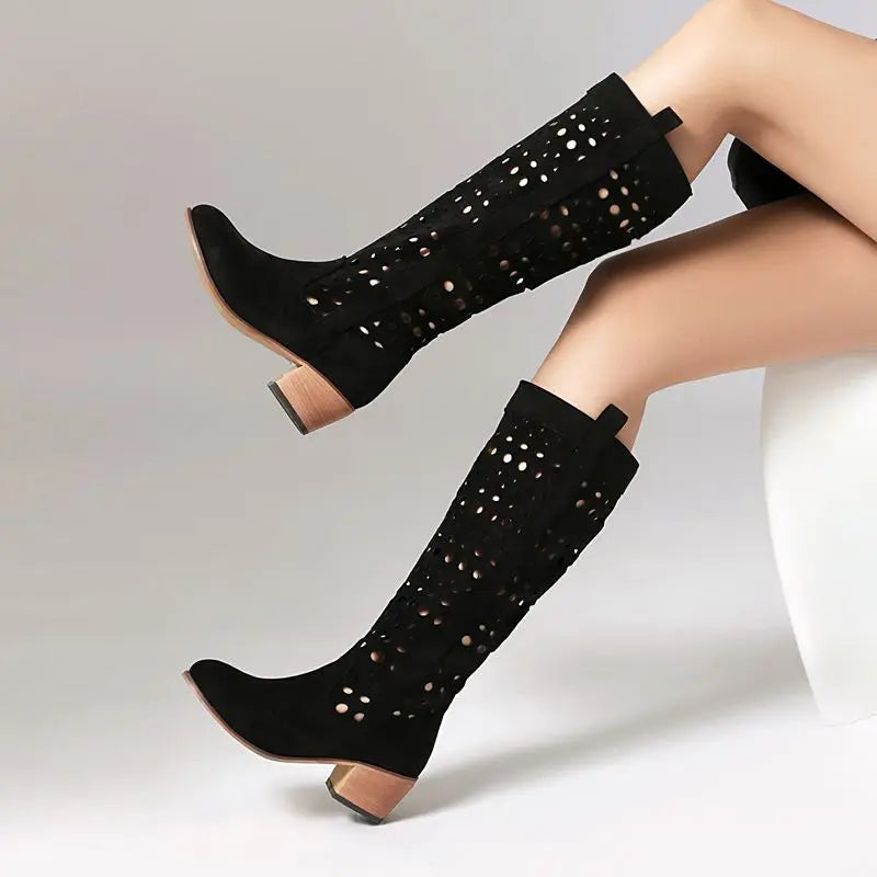 Cowboystövlar i mocka med utskuret mönster: romantik möter vilda västern