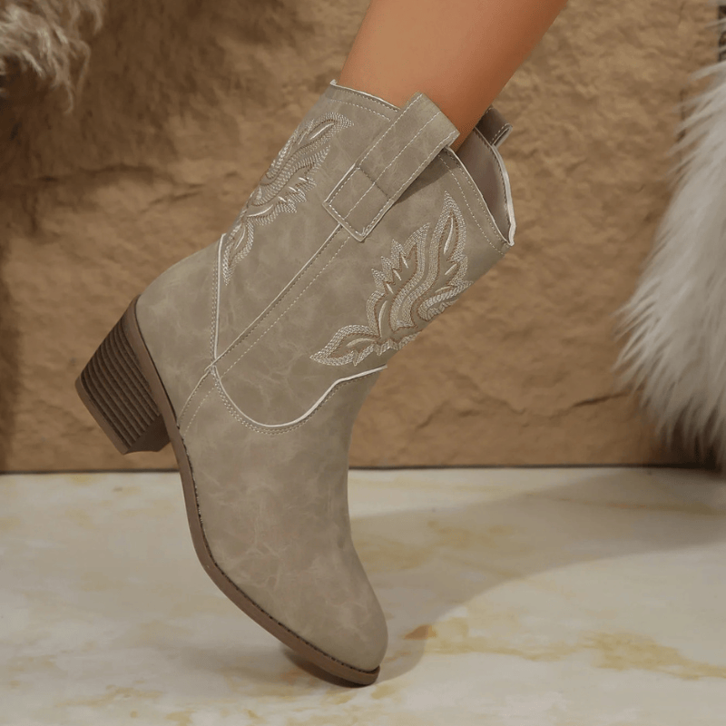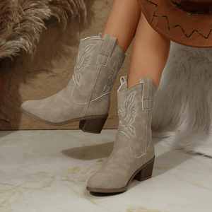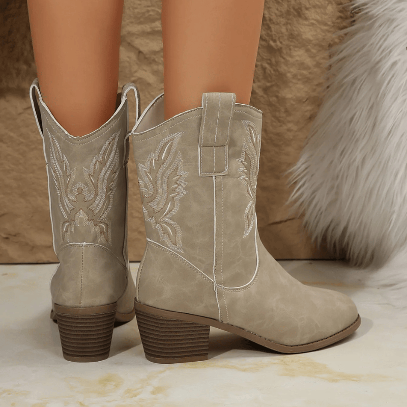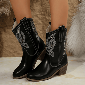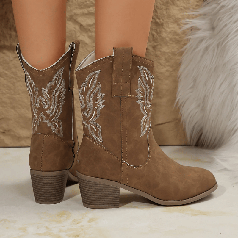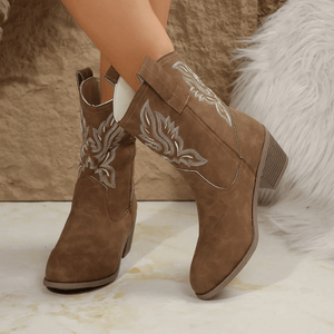 Cowboyboots med broderad design och kraftig klack – elegans med attityd för dina äventyr
