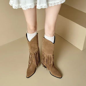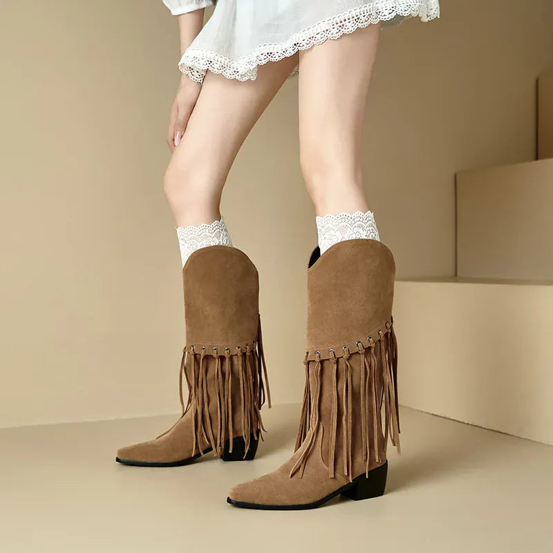 Cowboyboots med fransar i mjuk mockalook: känn friheten i varje steg