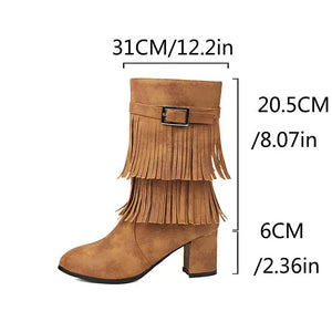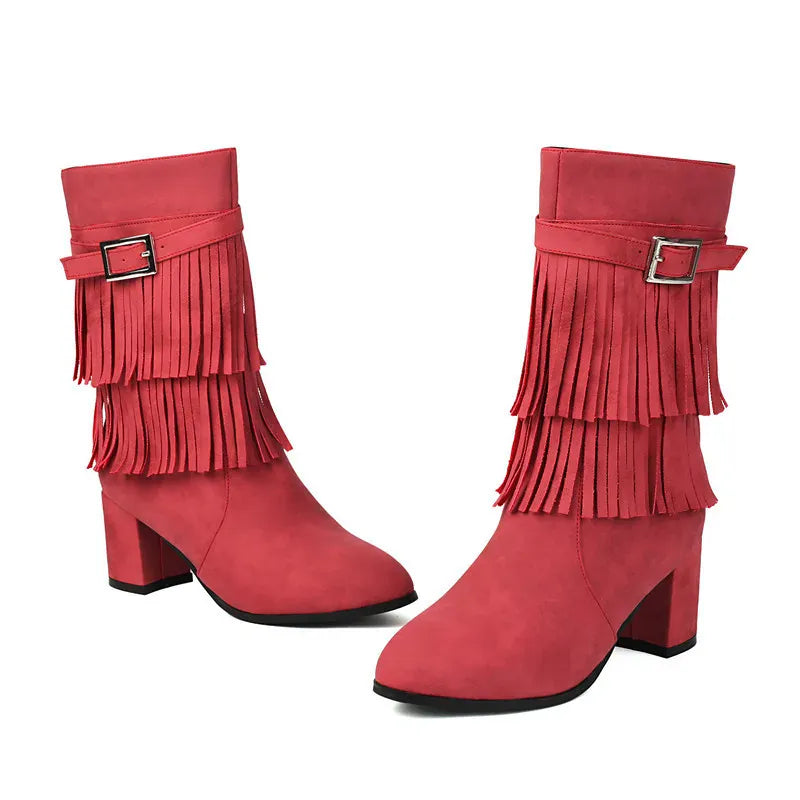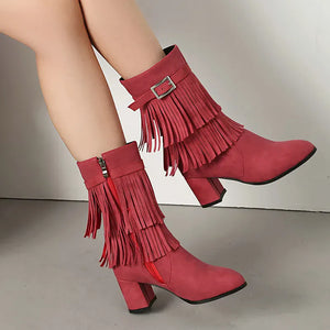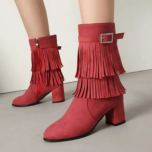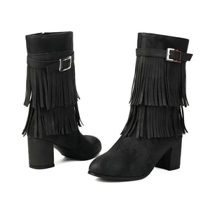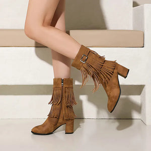 Cowboyboots med fransar och blockklack