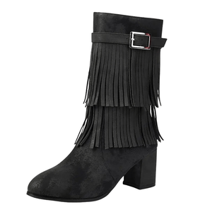 Upptäck en ny favorit i din garderob – dessa cowboyboots med fransar och blockklack är lika mycket ett modeuttryck som ett par skor. Med sin mjuka känsla, iögonfallande design och bekväma passform, lyfter de varje outfit med en touch av västernromantik. Oavsett om du bär dem till jeans, klänning eller kjol, kommer de garanterat att stjäla blickarna.