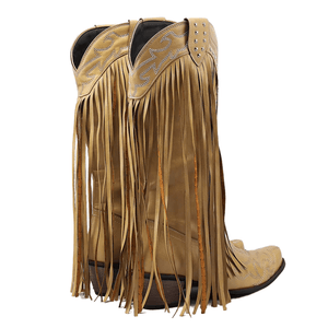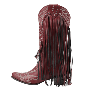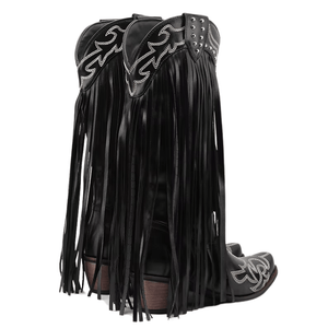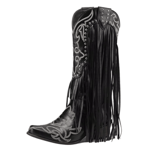 Ge din outfit en dos äkta westernkänsla med dessa ikoniska cowboyboots i mockaliknande PU, dekorerade med broderier och långa fransar som rör sig snyggt när du går. Perfekta för dig som vill sticka ut – oavsett om du går på festival, en utekväll eller bara vill krydda vardagsstilen med en djärv cowgirl-touch. Hög klack, rund tå och bekväm passform gör dem lika sköna som de är iögonfallande.