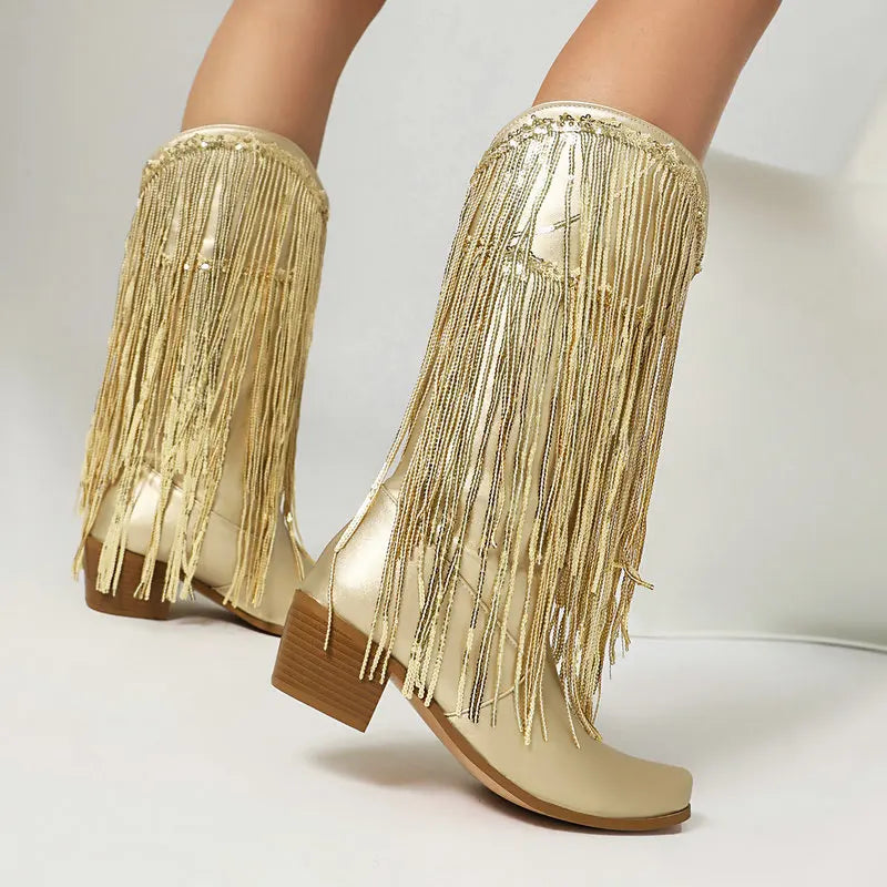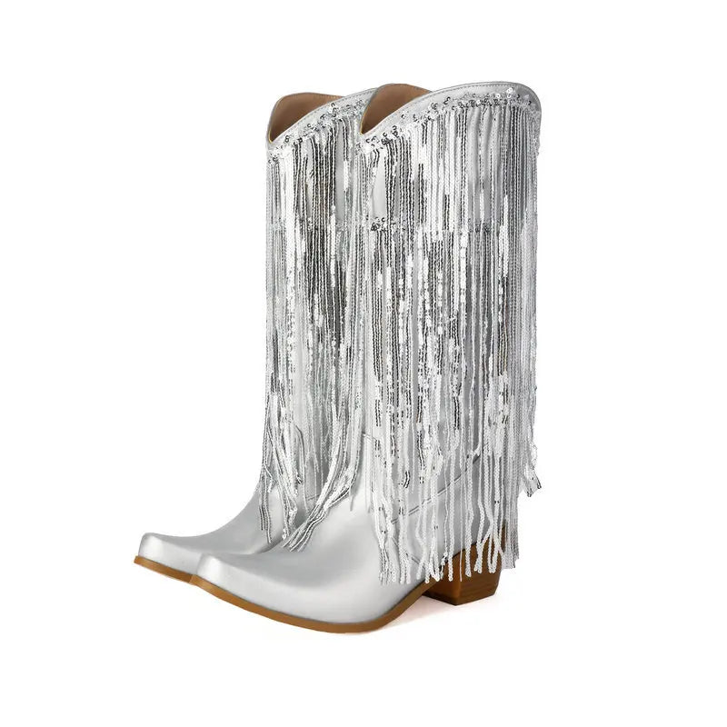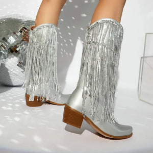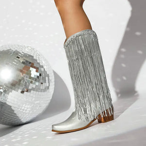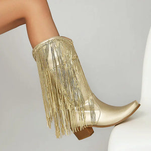 Cowboyboots med glittrande fransar