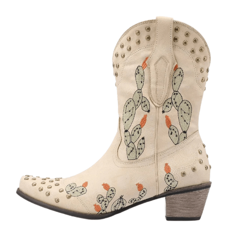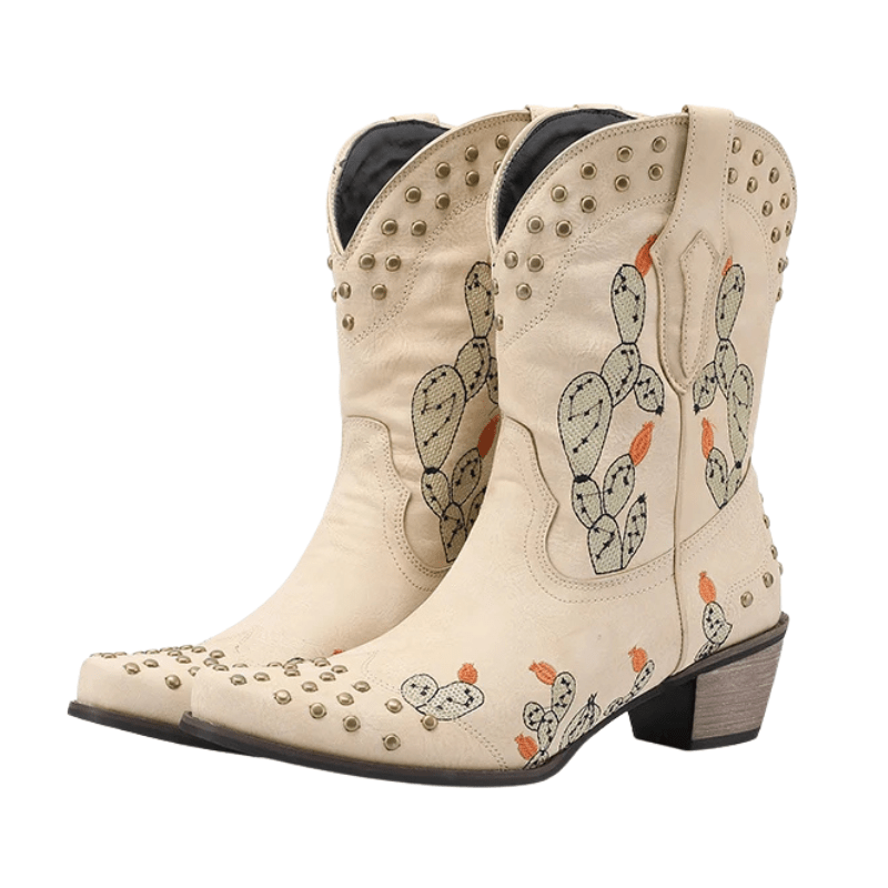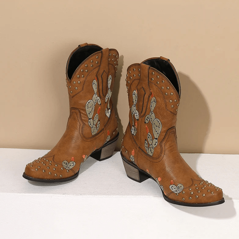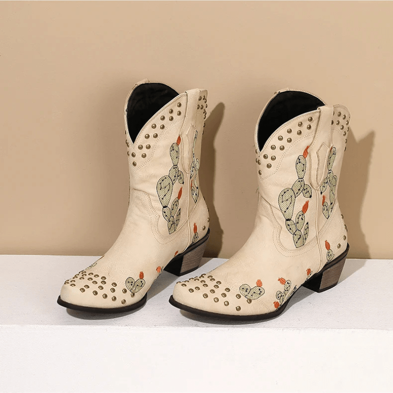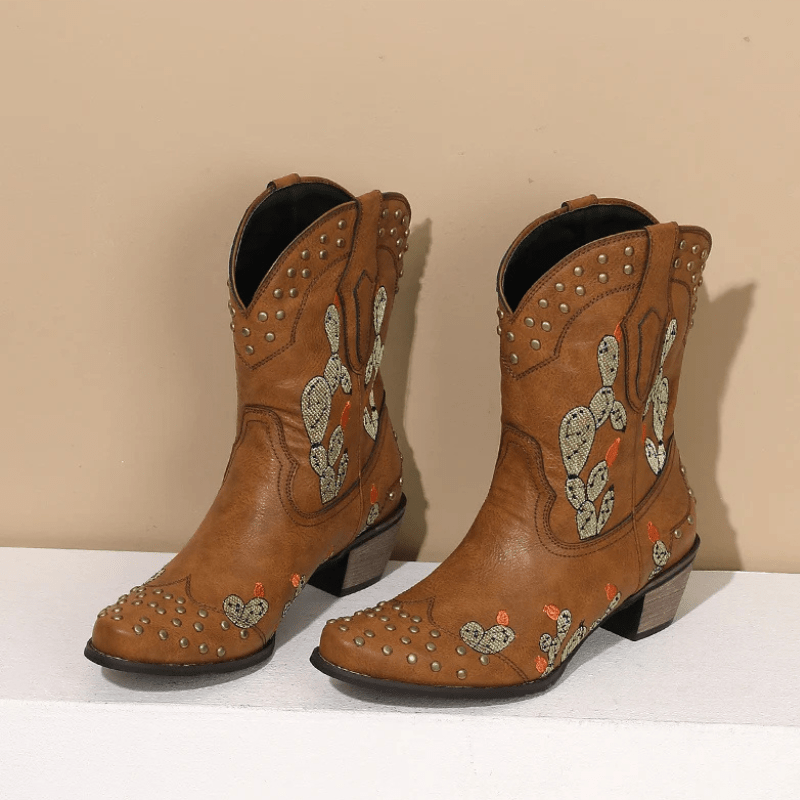 Cowboyboots med Kaktusbroderi och Nitar för Dam