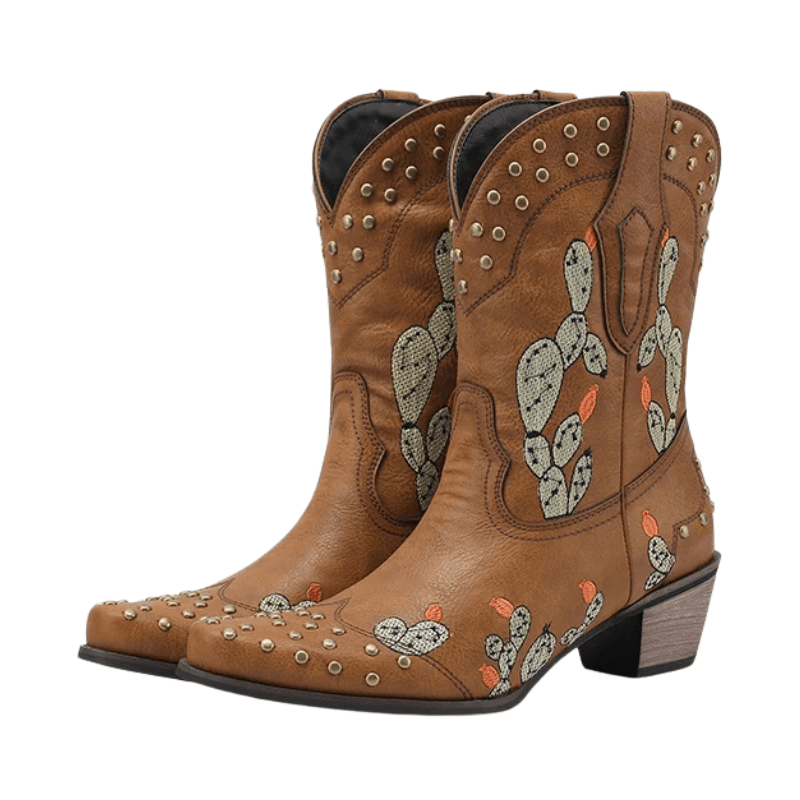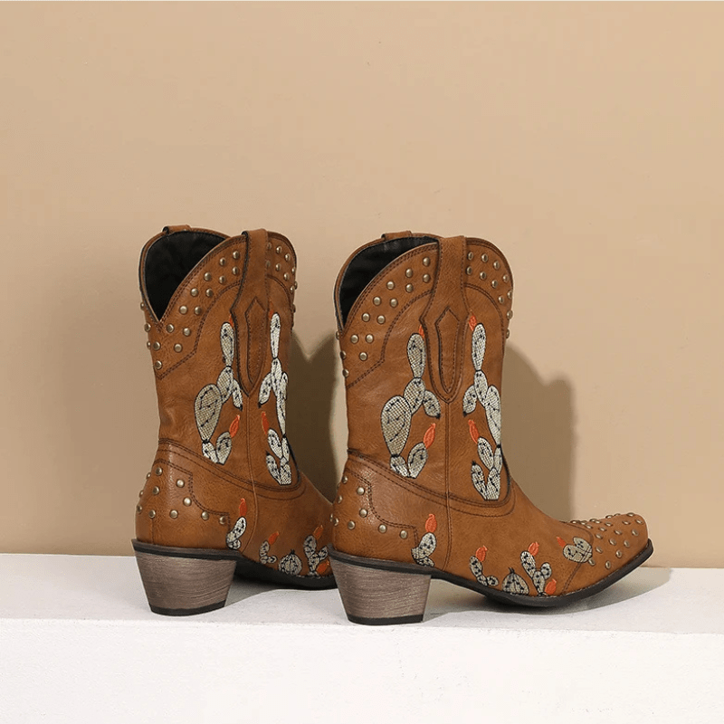 Cowboyboots med Kaktusbroderi och Nitar för Dam – låt din vilda sida ta plats