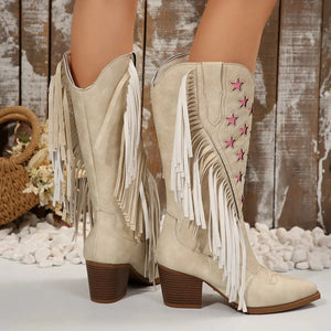 Cowboyboots med stjärnbroderi och långa fransar: en västdröm för dina steg