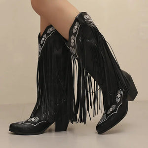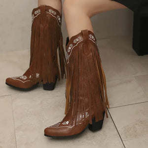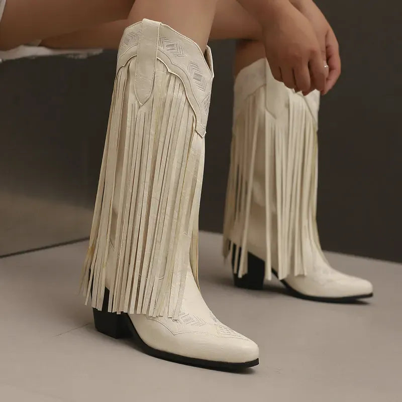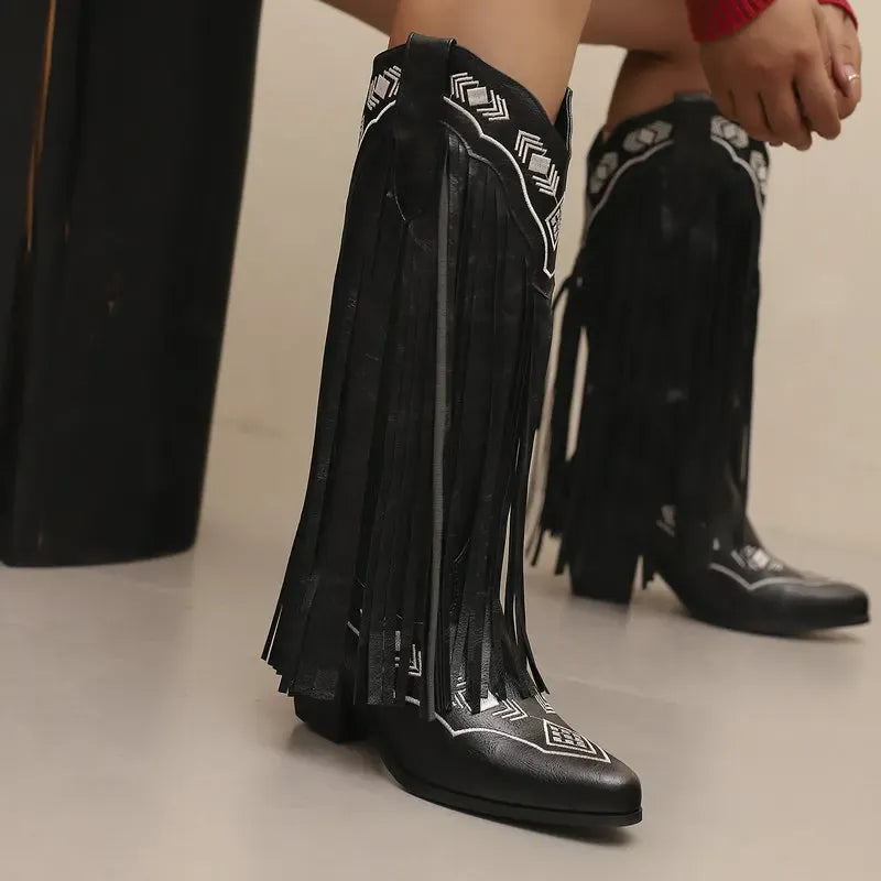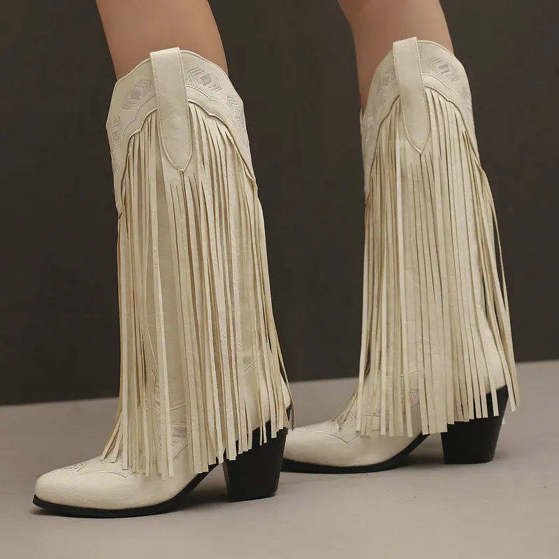 Cowboyboots med tofsar i mjukt läder och broderade detaljer: westernstil med själ och elegans