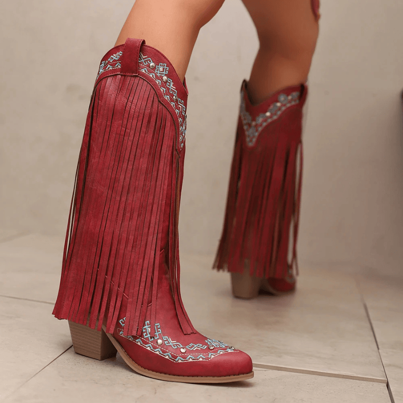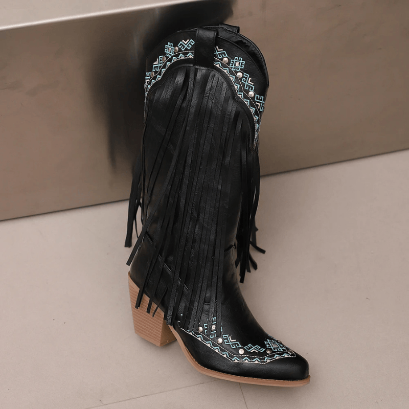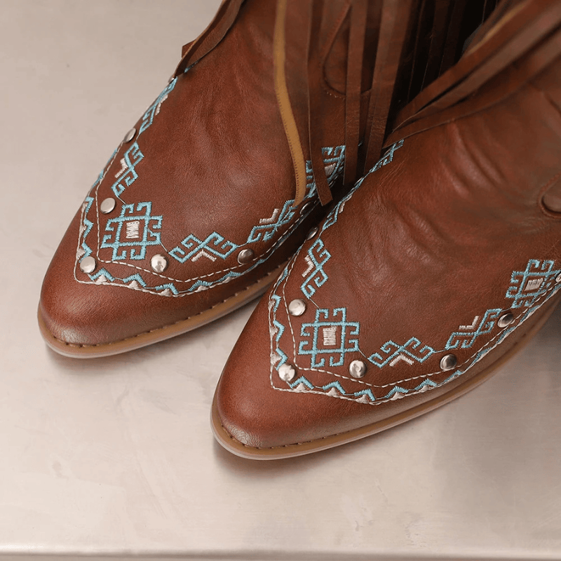 HemCowboyboots med tofsar och broderad vintageinspirerad design