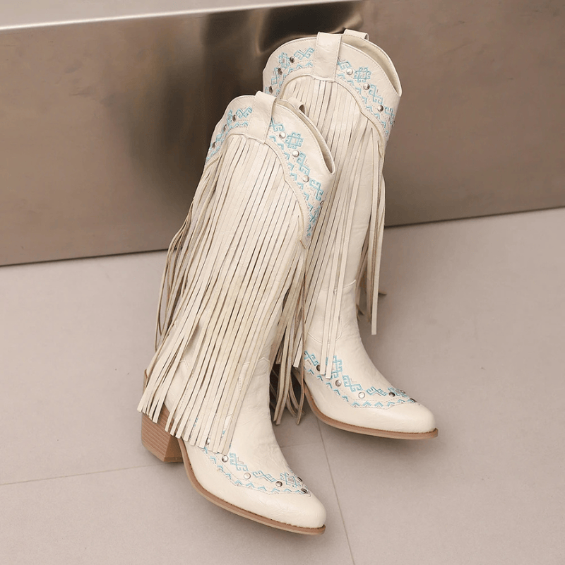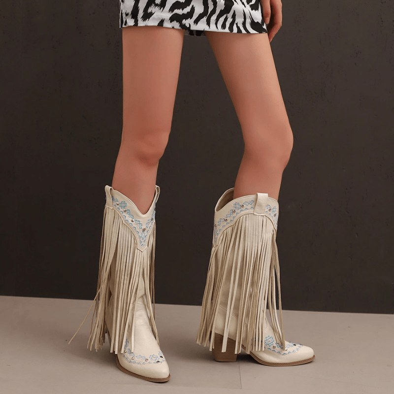 Cowboyboots med tofsar och broderad vintageinspirerad design
