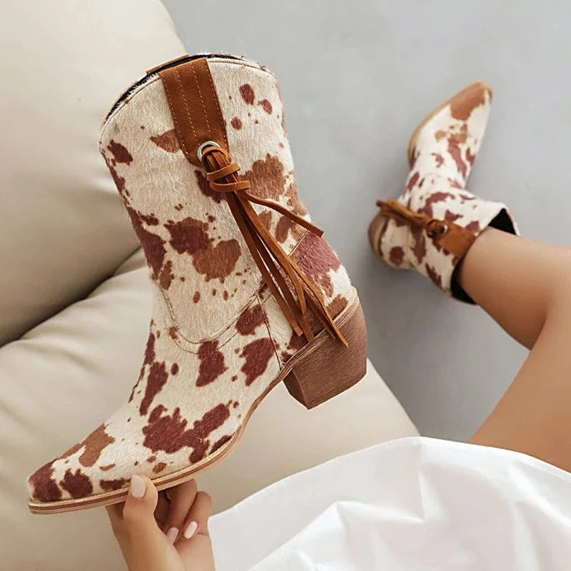 - Tidlös westernstil med modern twist – de eleganta fransarna och de djärva mönstren gör varje steg till ett statement.