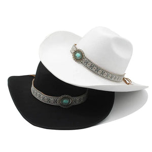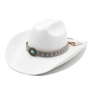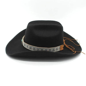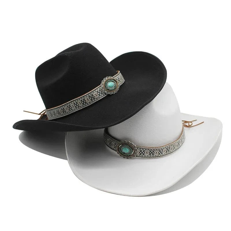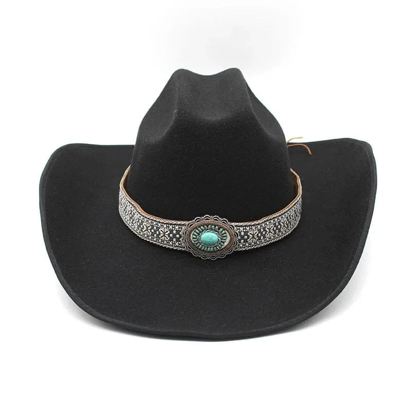 Låt din inre cowgirl glänsa med vår cowboyhatt för dam, en ikonisk accessoar som förenar vilda västern-attityd med modern finess. Perfekt för vinterfester, bröllop eller temaevenemang där du vill sticka ut med både elegans och karaktär. Den mjuka filtkänslan och det dekorativa hattenbandet med turkos detalj ger en autentisk och exklusiv look.