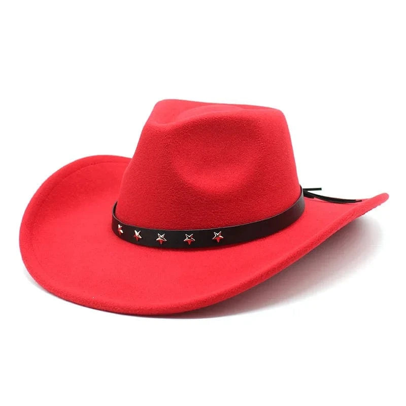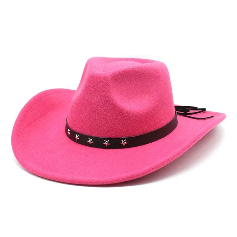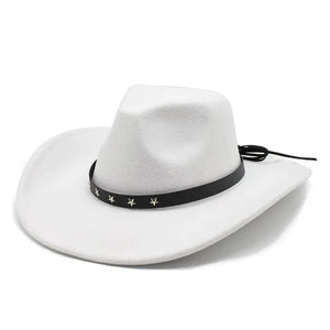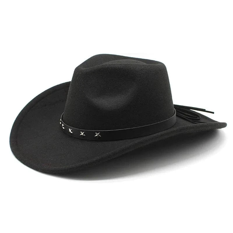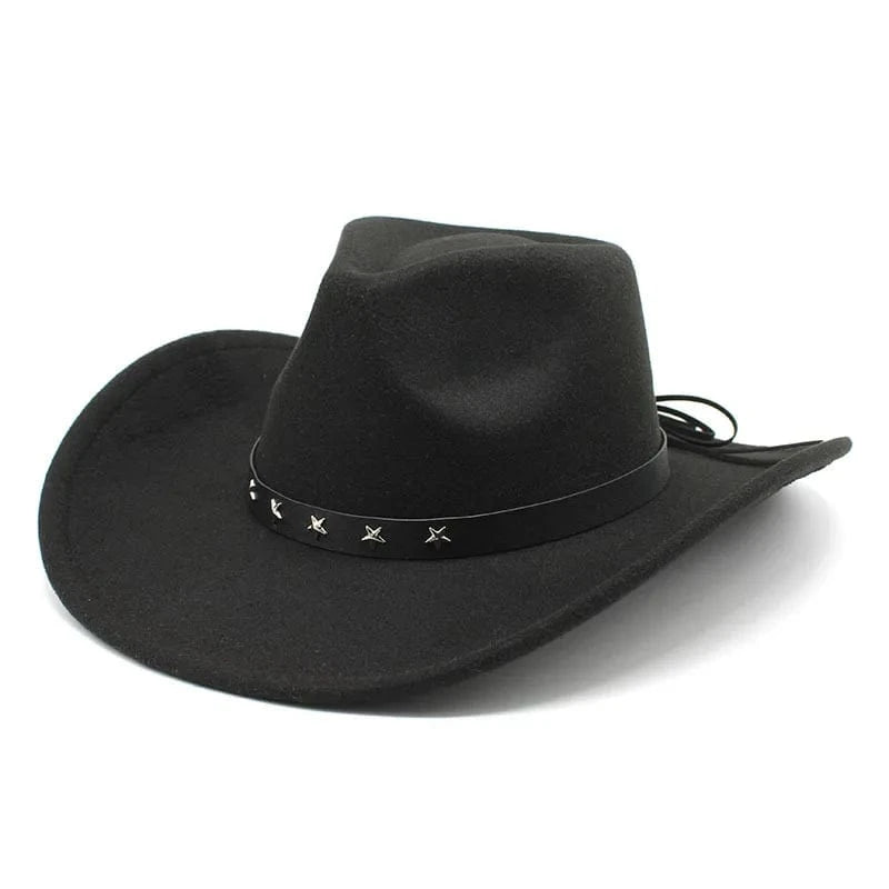 Upplev känslan av frihet och äventyr med vår cowboyhatt i filt med stjärnband, en perfekt kombination av klassisk westernstil och modern elegans. Oavsett om du bär den till en festival, fest eller en dag ute i naturen, ger den här hatten din look en självsäker och tidlös karaktär.