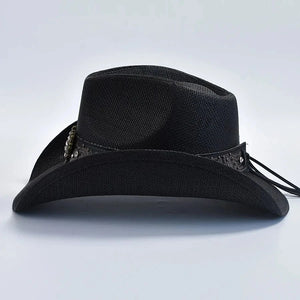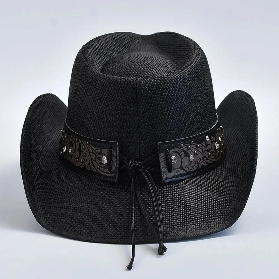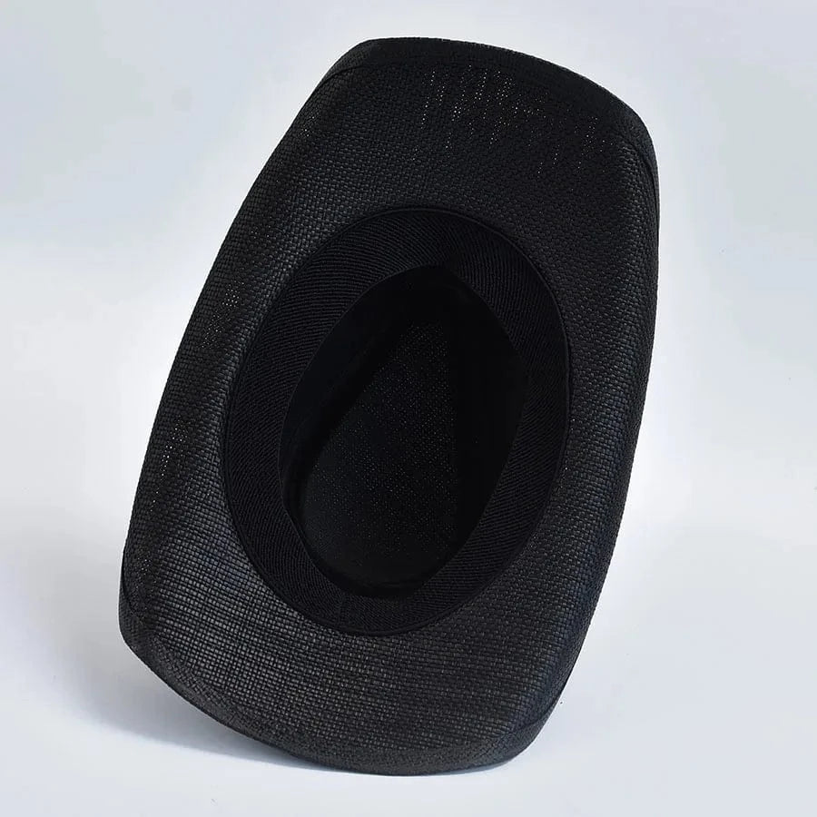 owboyhatt i svart flätad halmlook med hjärtspänne