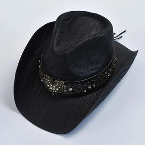 Låt din vilda sida ta plats med denna eleganta cowboyhatt i svart flätad halmlook – en perfekt balans mellan tidlös westernstil och feminin charm. Det glittrande hjärtspännet framtill ger en touch av romantik och lyx, medan den strukturerade formen ger dig en självsäker look, oavsett om du är på festival, resa eller en sommarkväll under stjärnorna.