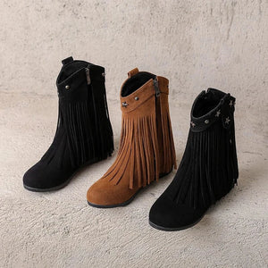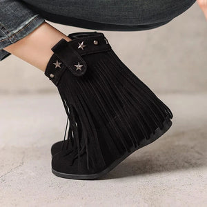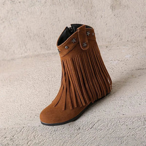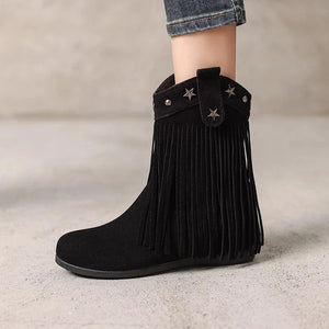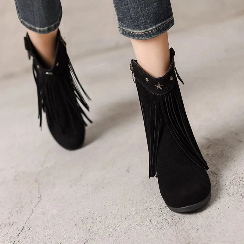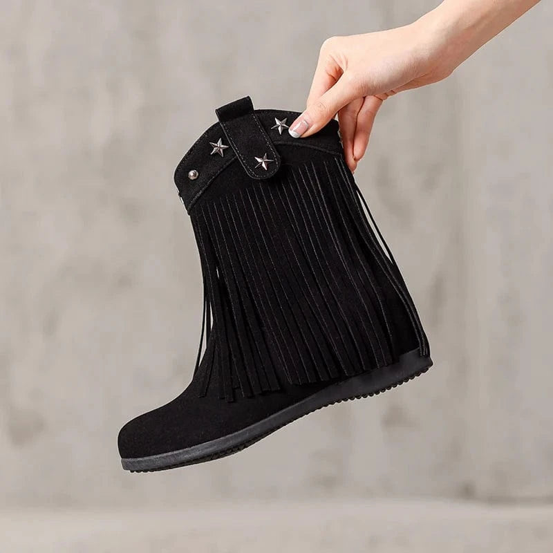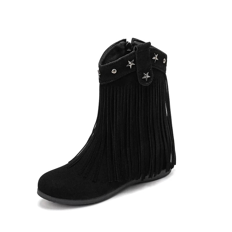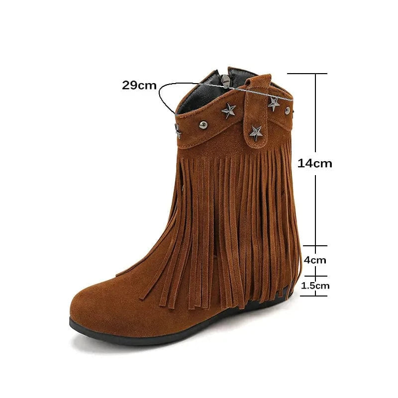 Cowgirl-Ankelboots i Mocka med Fransar och Stjärnor