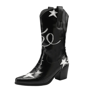 Kliv in i rampljuset med dessa Cowgirl Boots med Stjärnbroderi – en kärleksförklaring till frihet, attityd och feminina linjer. Med sina glansiga färger och iögonfallande stjärnor blir varje steg du tar en självsäker dans mellan det klassiska och det trendiga. Oavsett om du bär dem till jeans, klänning eller festivaloutfit, kommer de att ge din look den där unika western-auran som aldrig går ur tiden.