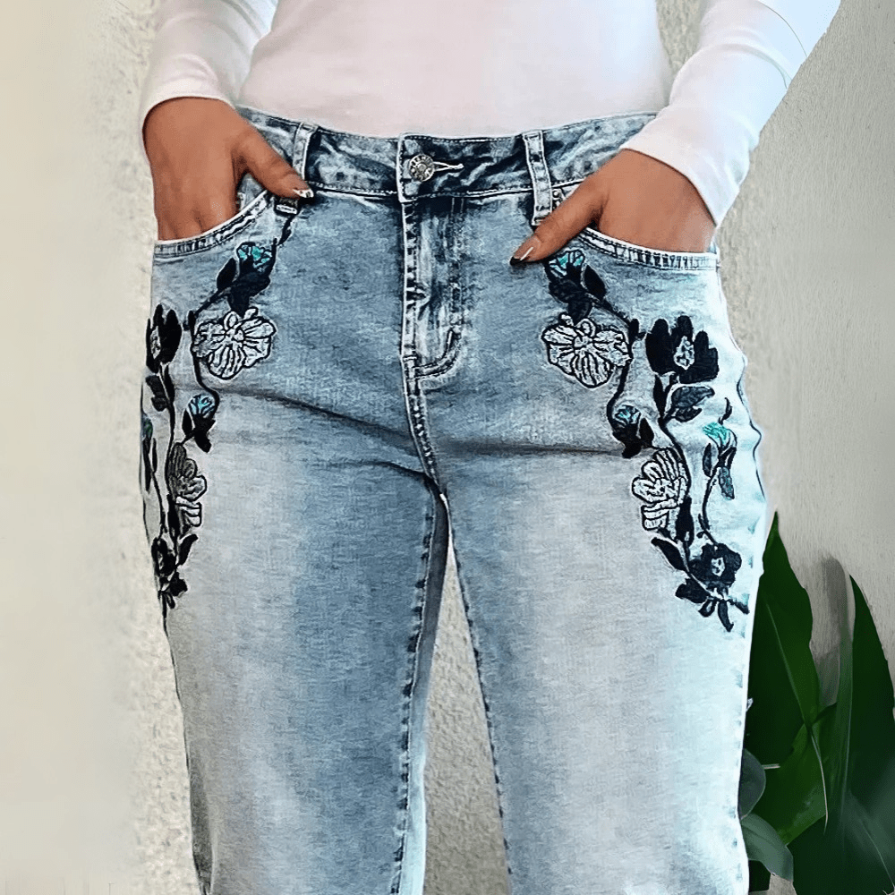 Låt dina jeans tala för sig själva – med handbroderade blommor och en perfekt flare-form är dessa Cowgirl Style Jeans allt du behöver för att sticka ut med stil och självsäkerhet.