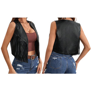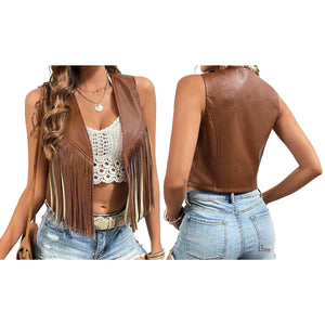 Lyft din stil till nya höjder med denna korta cowgirl-väst i mjukt, följsamt material och med dramatiska fransar. Perfekt för att ge varje outfit en touch av boho och western-romantik.