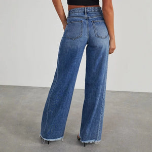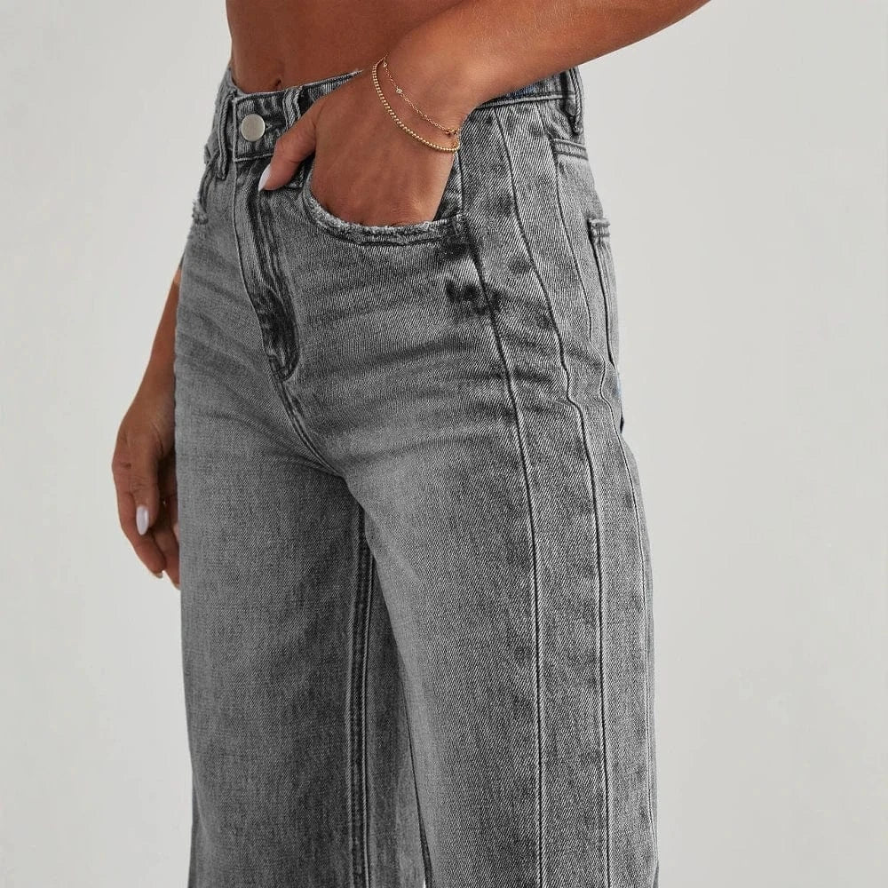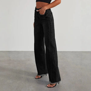 Dessa cropped jeans för dam kombinerar bekväm passform med rå edge – perfekta för dig som vill skapa en avslappnad men stilren look varje dag. Med sin raka silhuett och fransade fållar blir de en självklar favorit i din garderob.