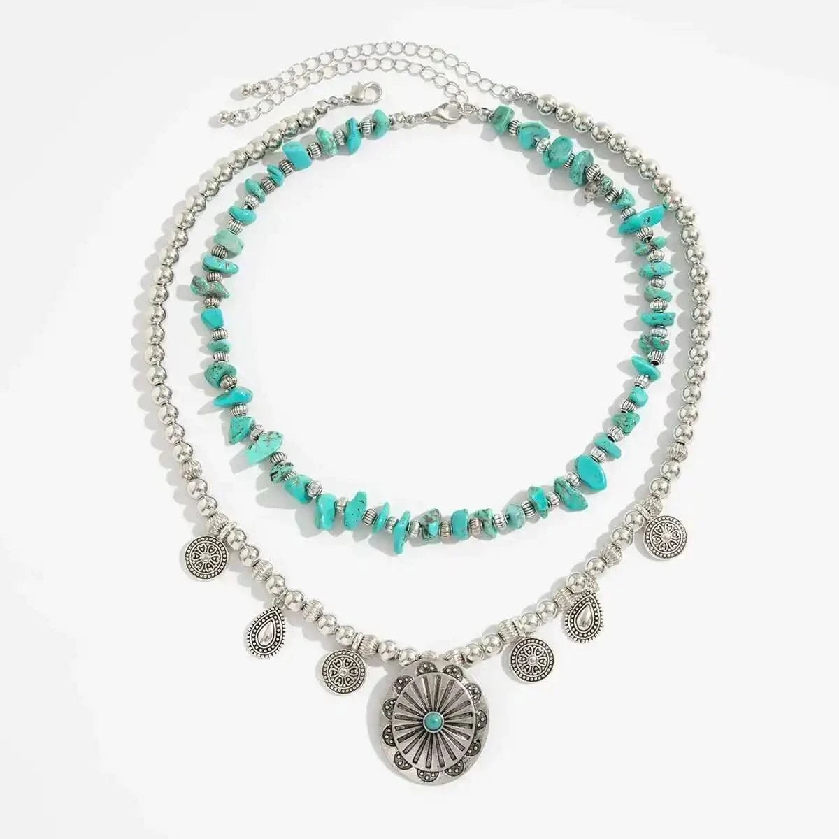 Dubbelt western-halsband med turkos och silverberlocker – din nya boho-favorit