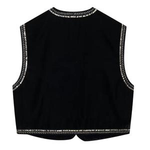 Elegant Broderad Väst i Svart