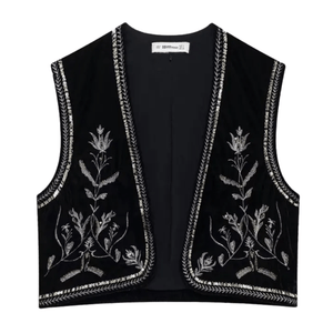 Elegant Broderad Väst i Svart: när tidlös charm möter vintageglans