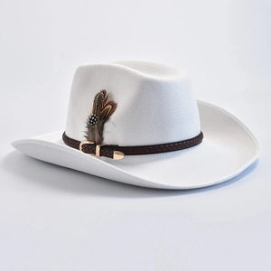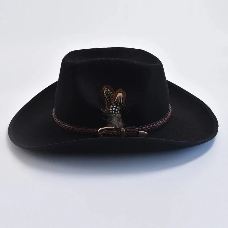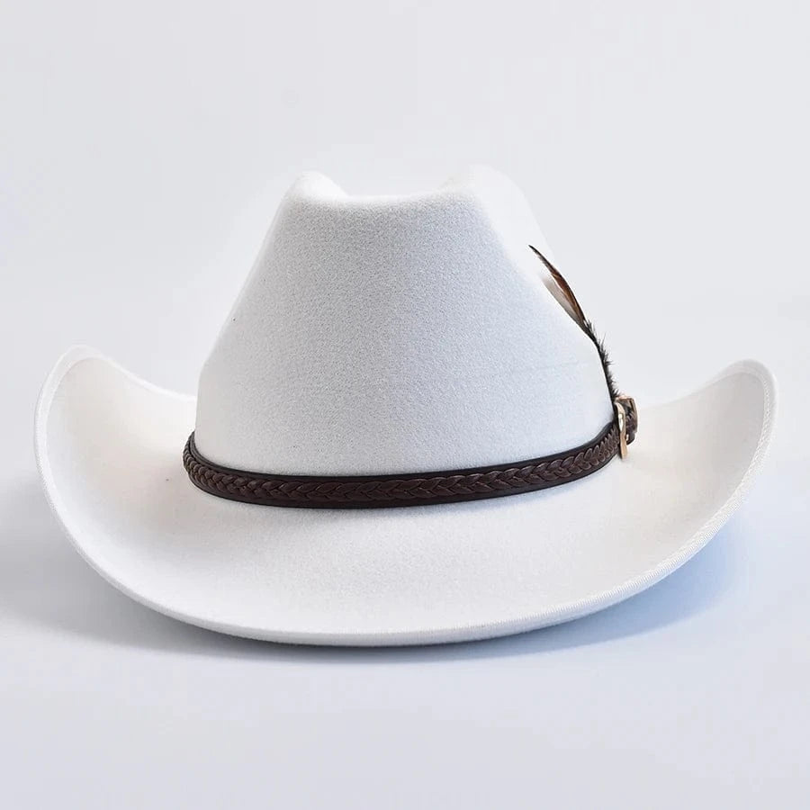 Upptäck den tidlösa charmen hos vår Elegant Cowboyhatt i Mjuk Filt, skapad för dig som vill kombinera klassisk västernstil med modern sofistikation. Den mjuka filtkvaliteten, den flätade läderdetaljen och fjäderaccessoaren gör hatten till en självklar stilikon – perfekt för både fest och vardag.